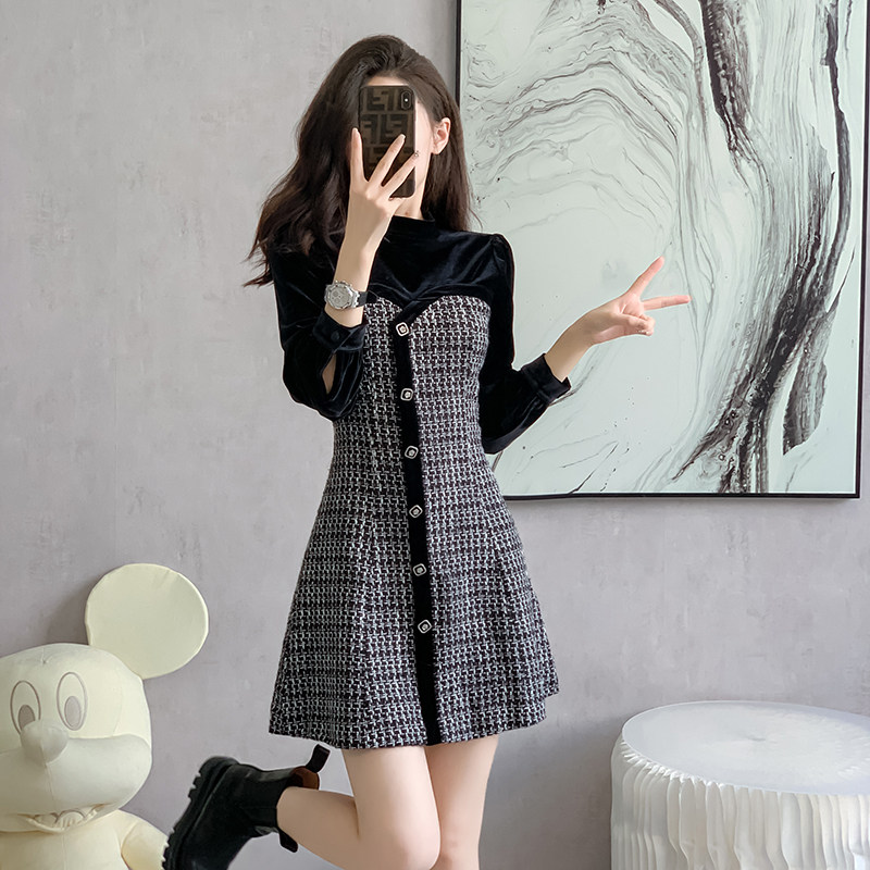 淘宝Yosicilwardrotaste,时尚A字混合涤纶纯色金丝绒舒适