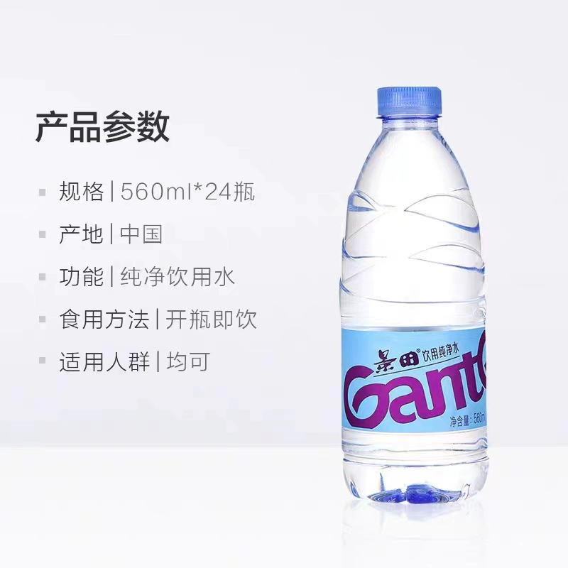 天猫淘工厂美妆直营,景田纯净水560ml*24瓶装非矿泉水接待会议家庭年会饮用水箱装