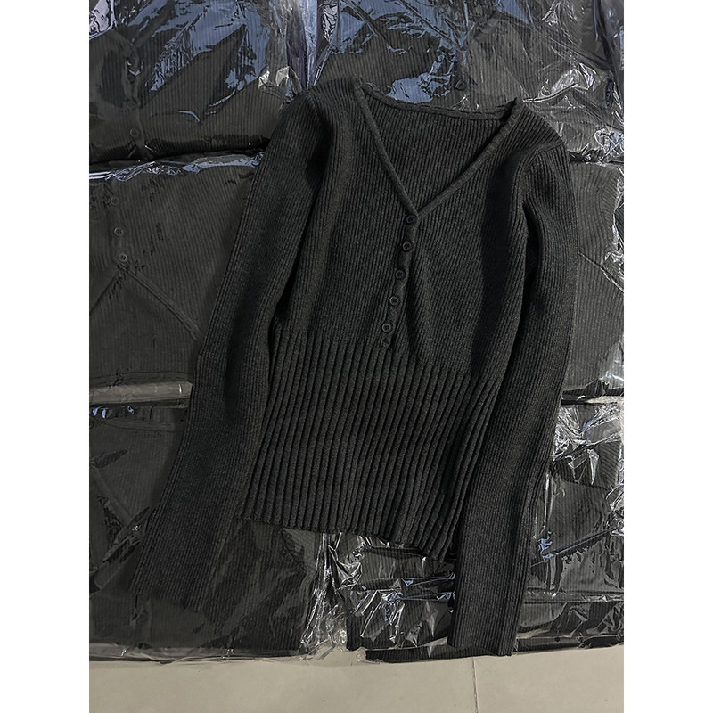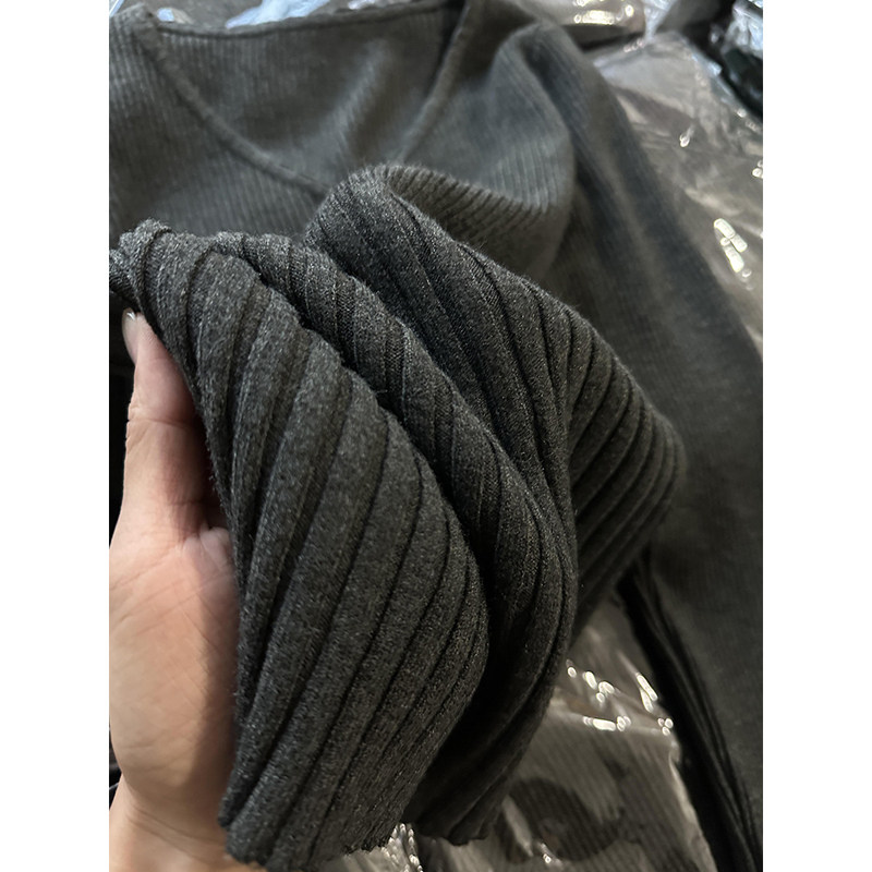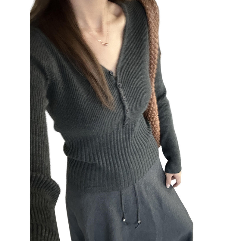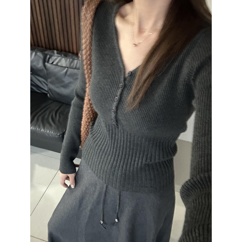 天猫韩范美依旗舰店,早秋穿搭韩系v领长袖打底针织衫上衣修身显瘦收腰灰色毛衣女内搭