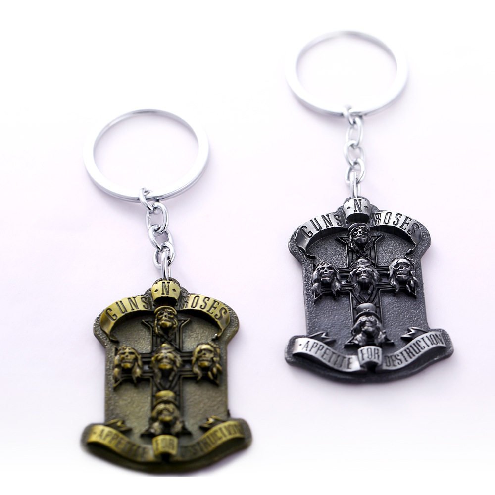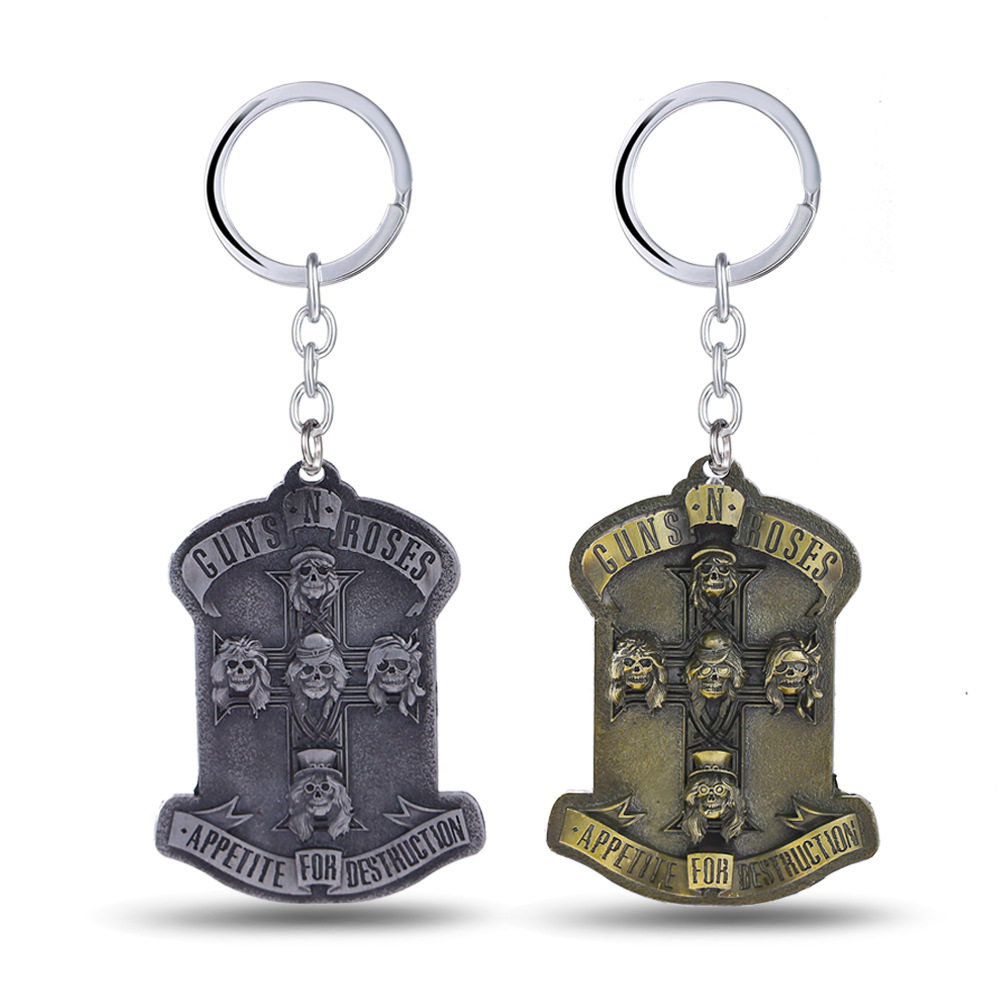 Guns N Roses 枪炮与玫瑰枪花乐队金属钥匙扣 摇滚乐队周边钥匙链