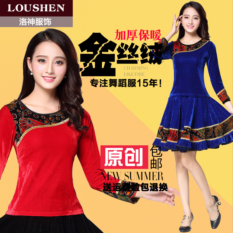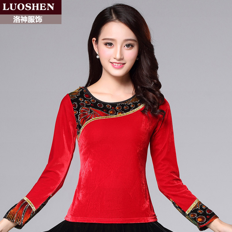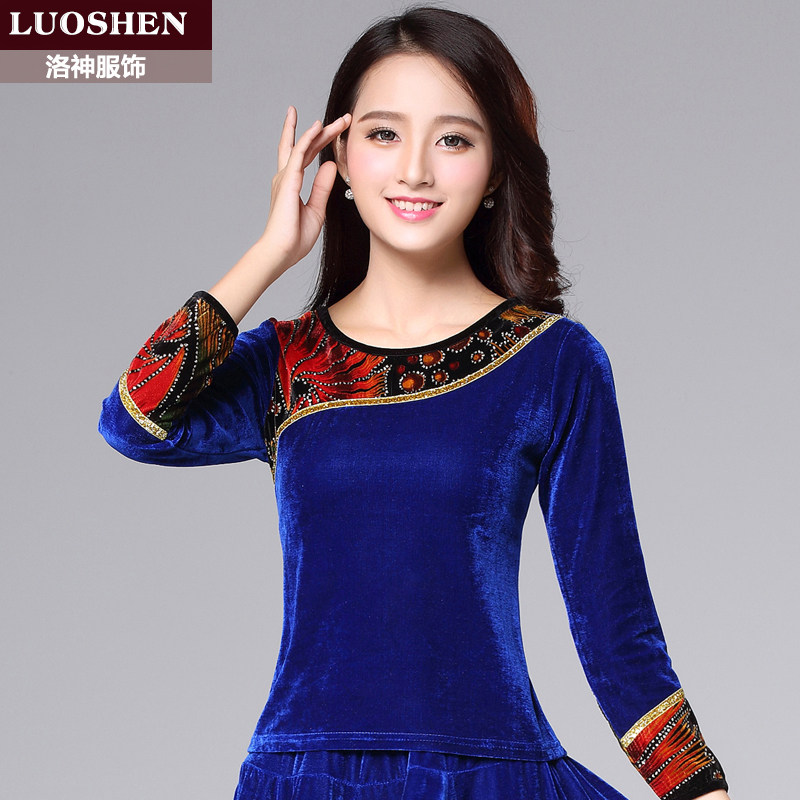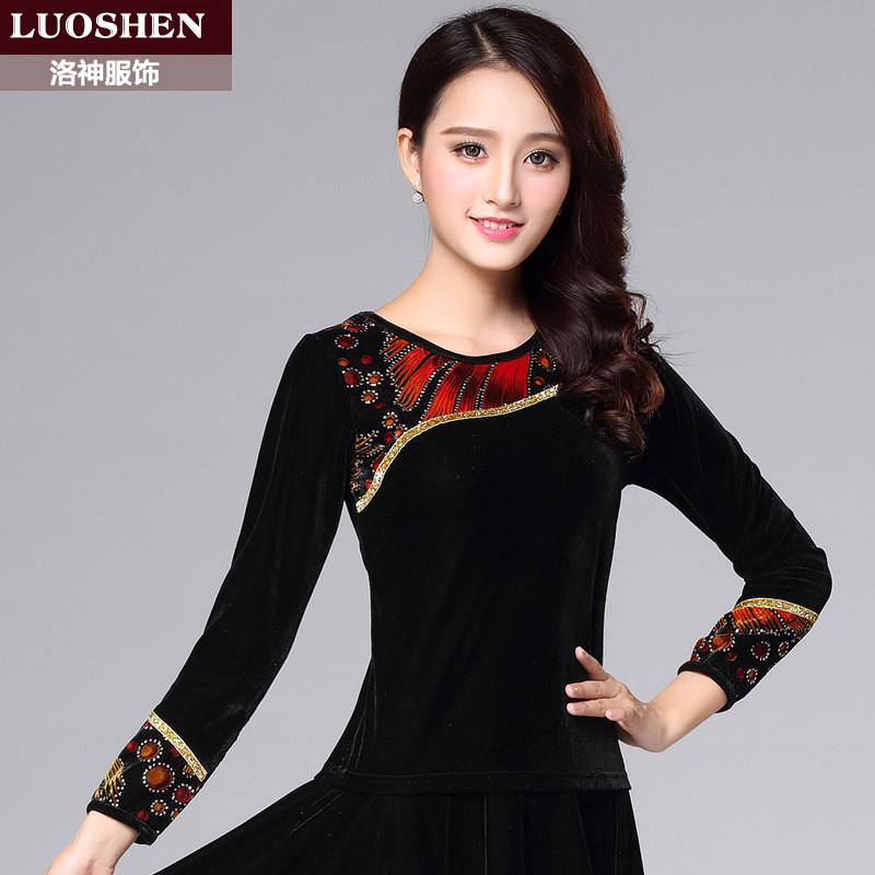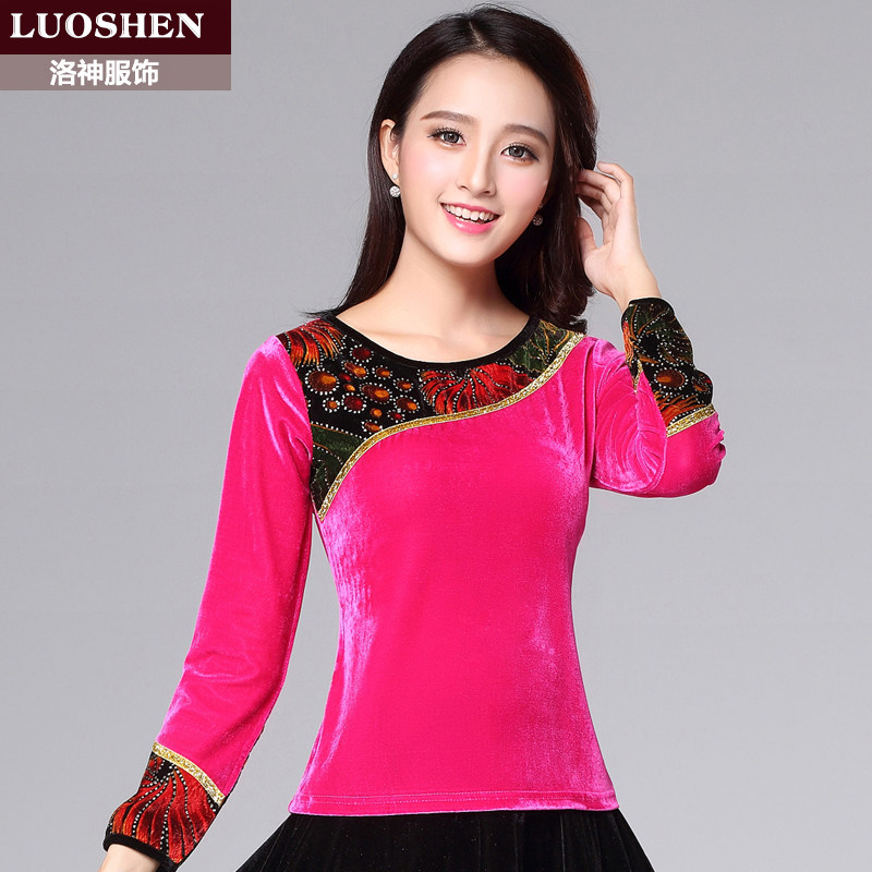洛神春秋季新款金丝绒广场舞服装女加绒加厚长袖上衣中老年舞蹈服