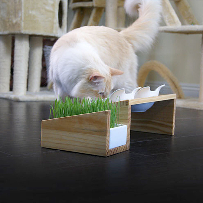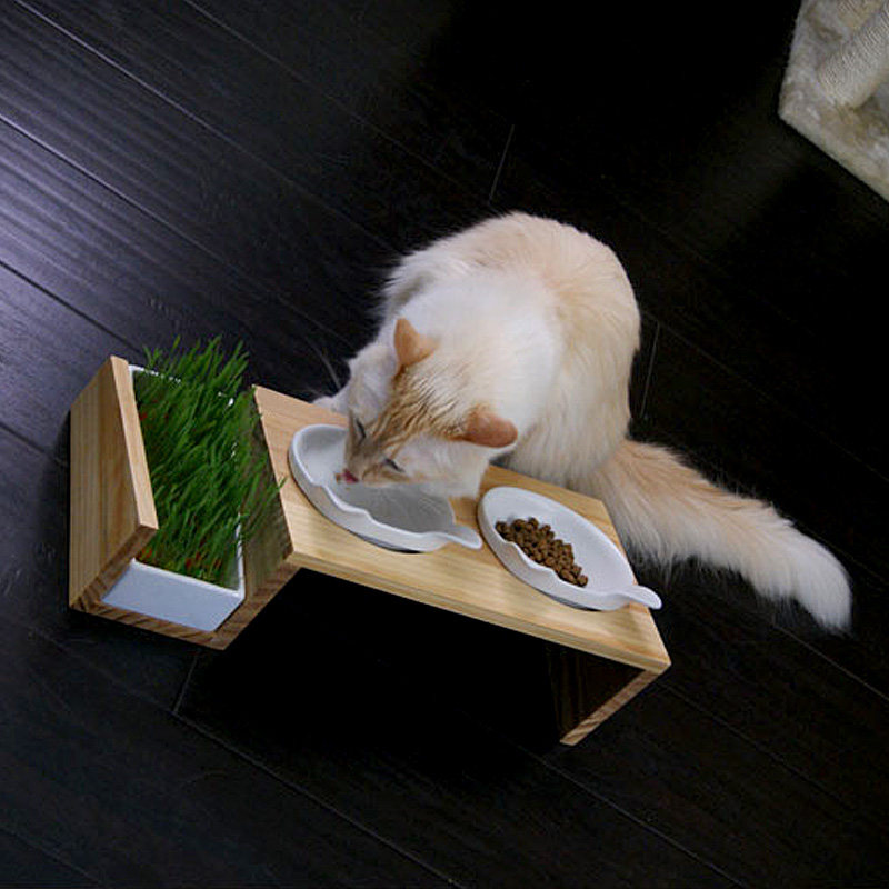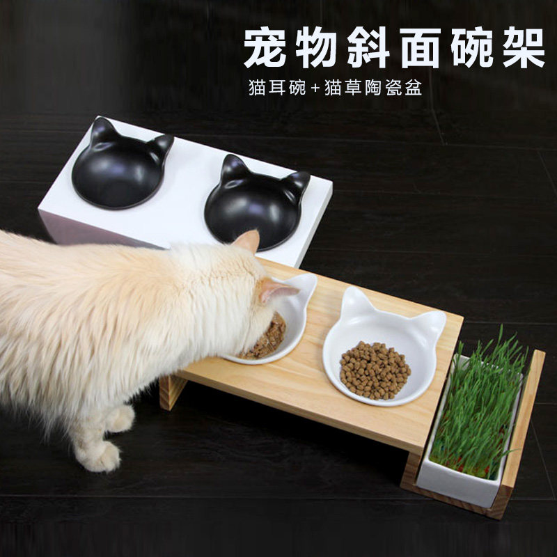 天猫咪贝萌旗舰店,宠物猫餐桌木制碗架猫耳套装陶瓷碗,宠物猫餐桌套装 三色可选