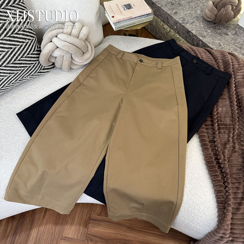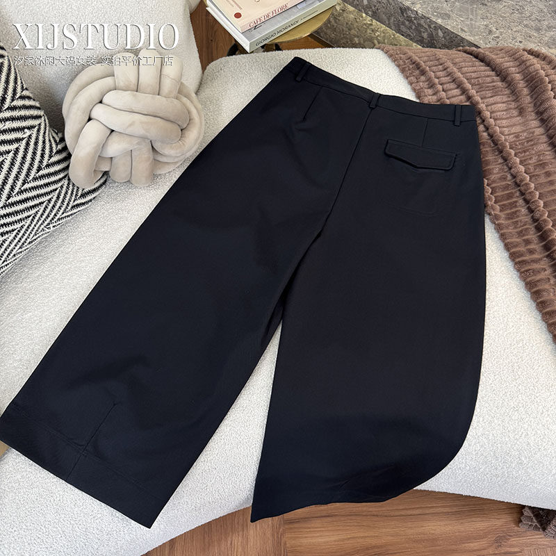 淘宝汐家休闲大码女装,汐家女裤 大码春夏新款山本宽松九分阔腿裤大码高腰茧型休闲裤子