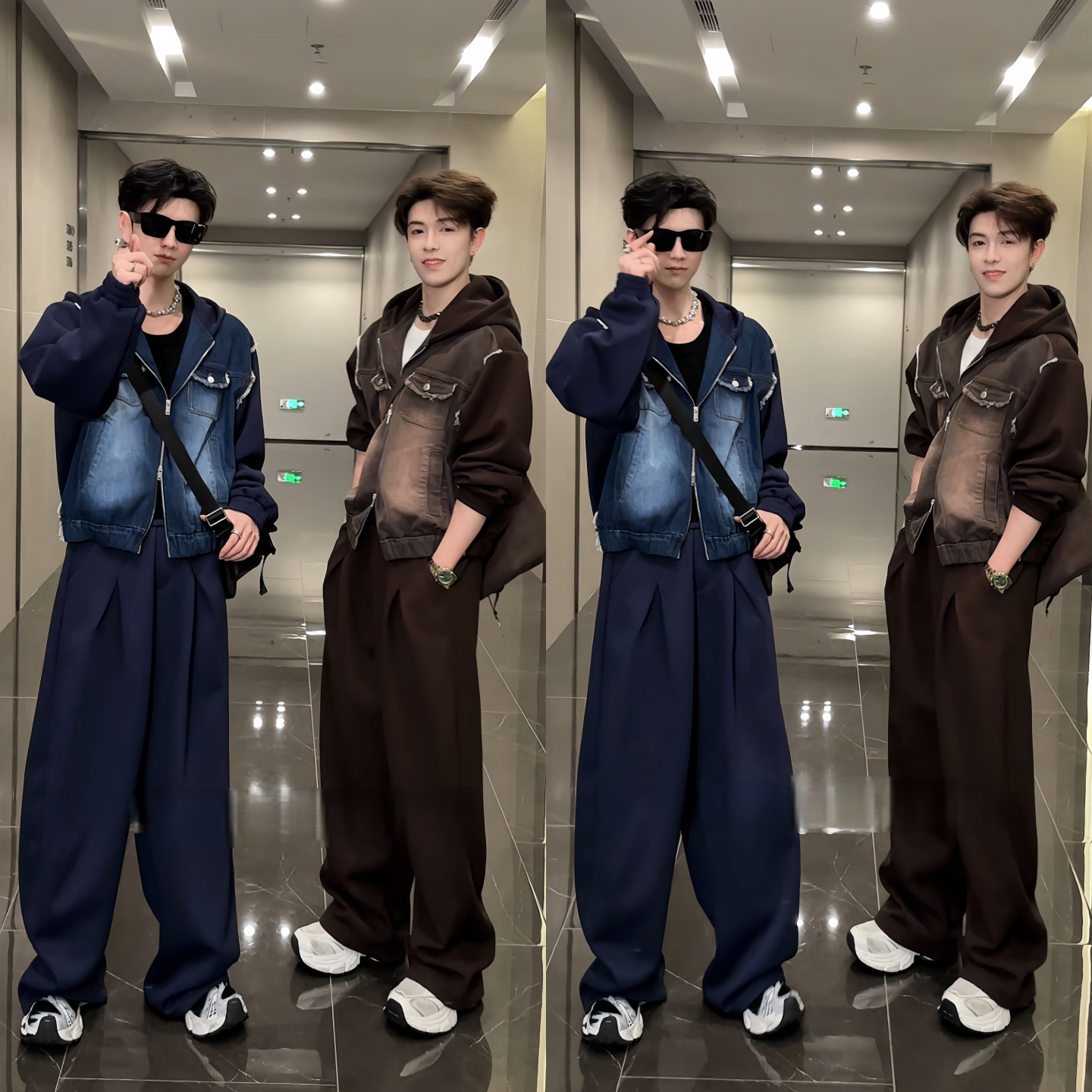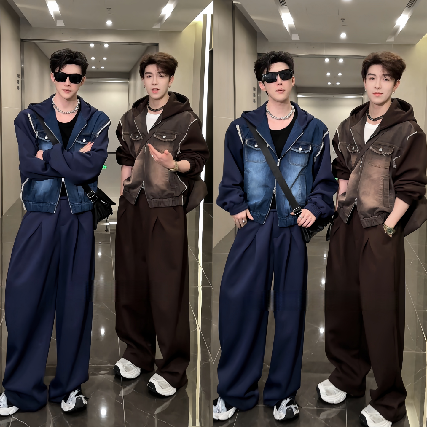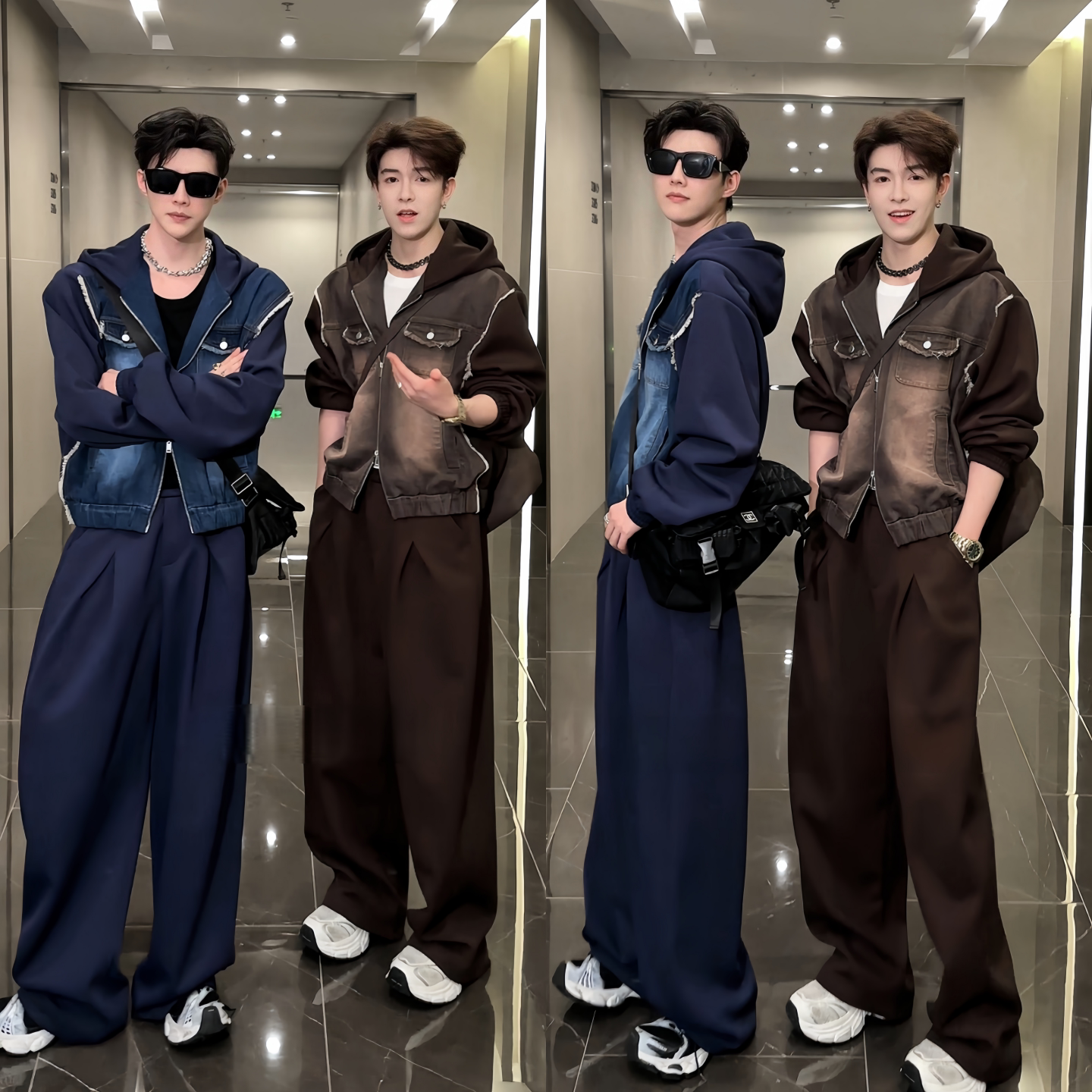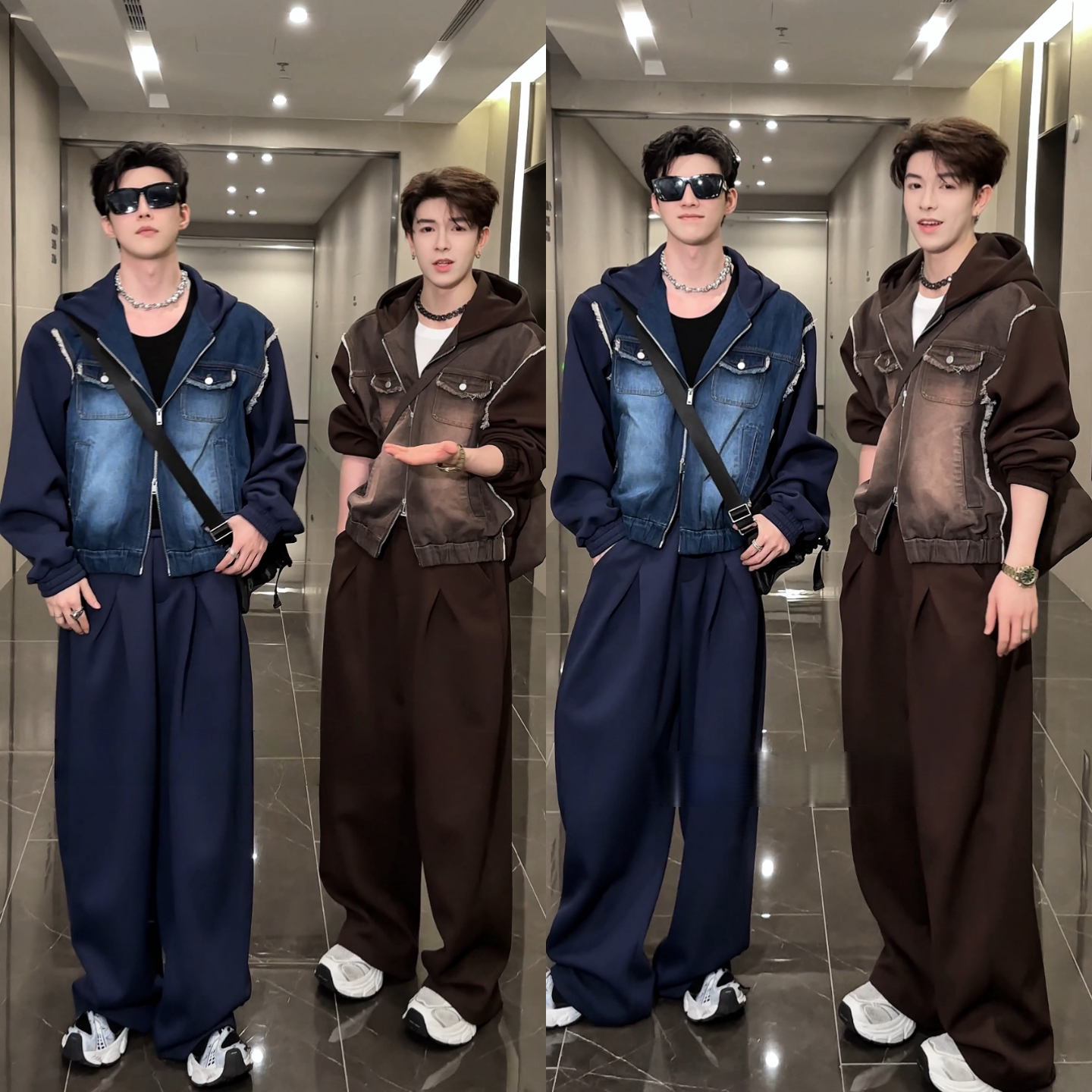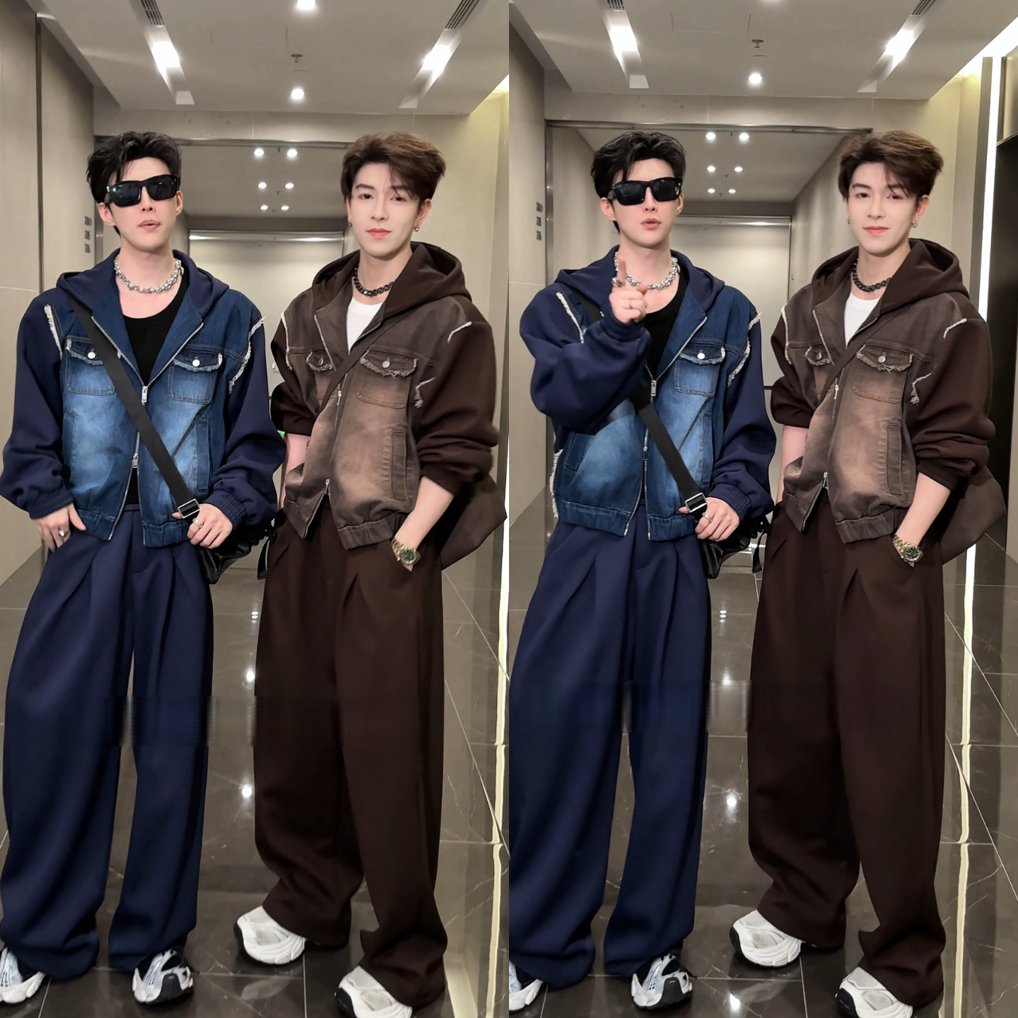 淘宝布梵潮男装,秋季新品小众潮流设计款牛仔套装