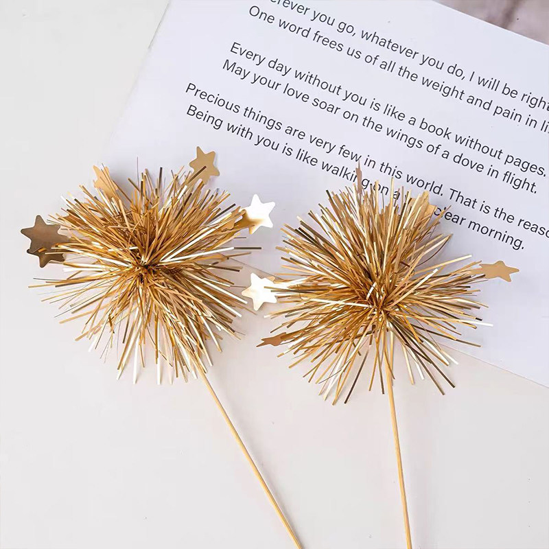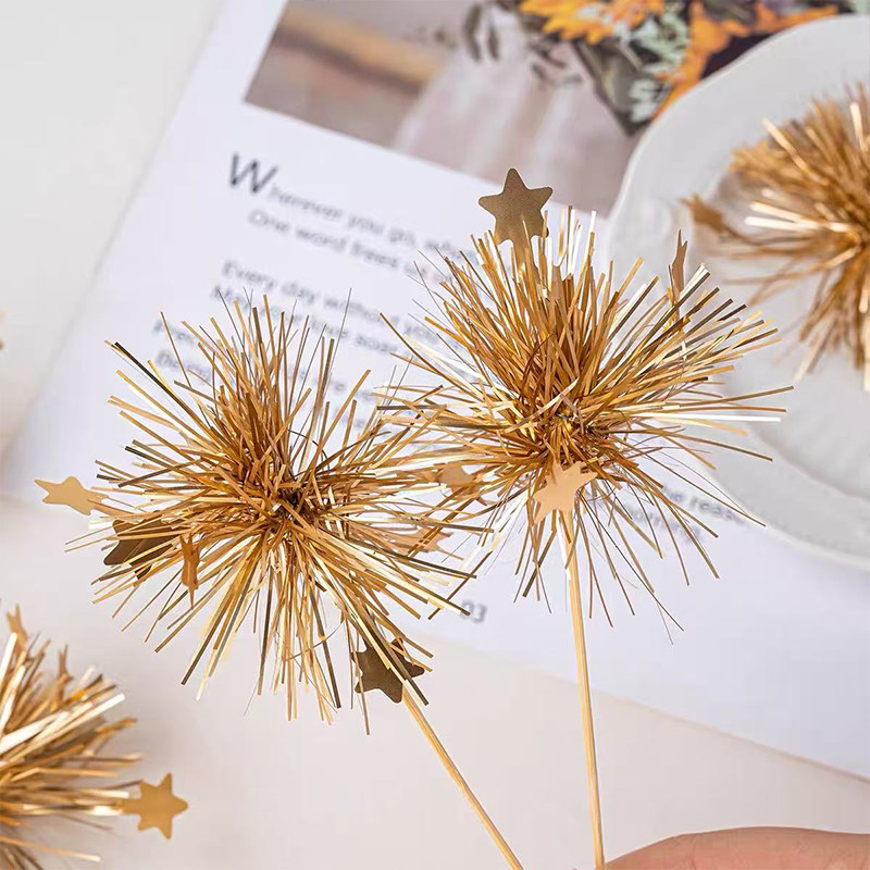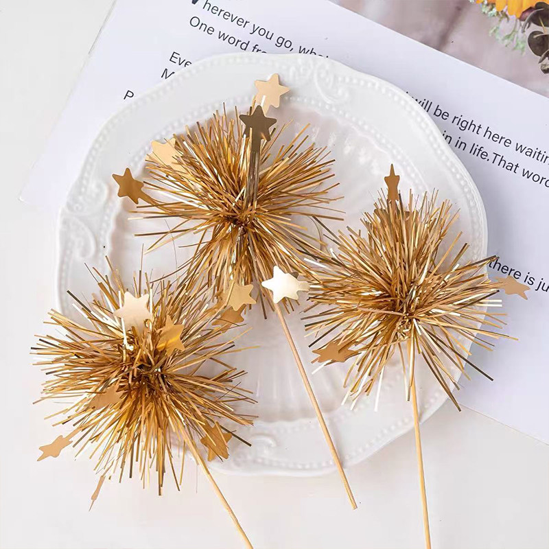 淘宝遇见你烘焙,韩式ins哑光金色银色雨丝生日蛋糕装饰插件新年红金流苏插旗配件