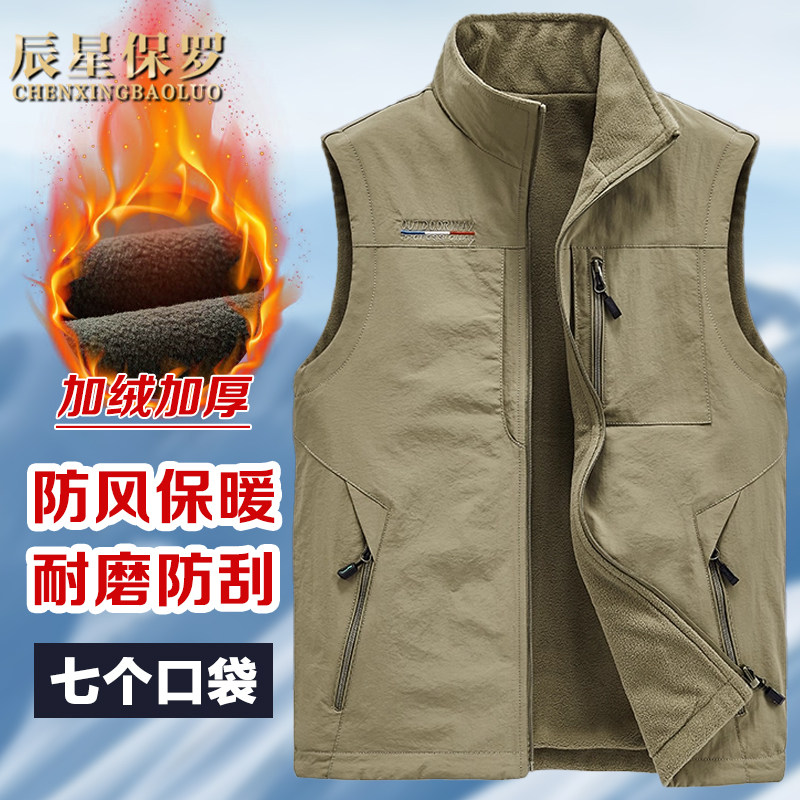 淘宝曼烁服饰店,2025秋冬保暖背心无袖坎肩男士户外多口袋加绒加厚摇粒绒马甲Q1