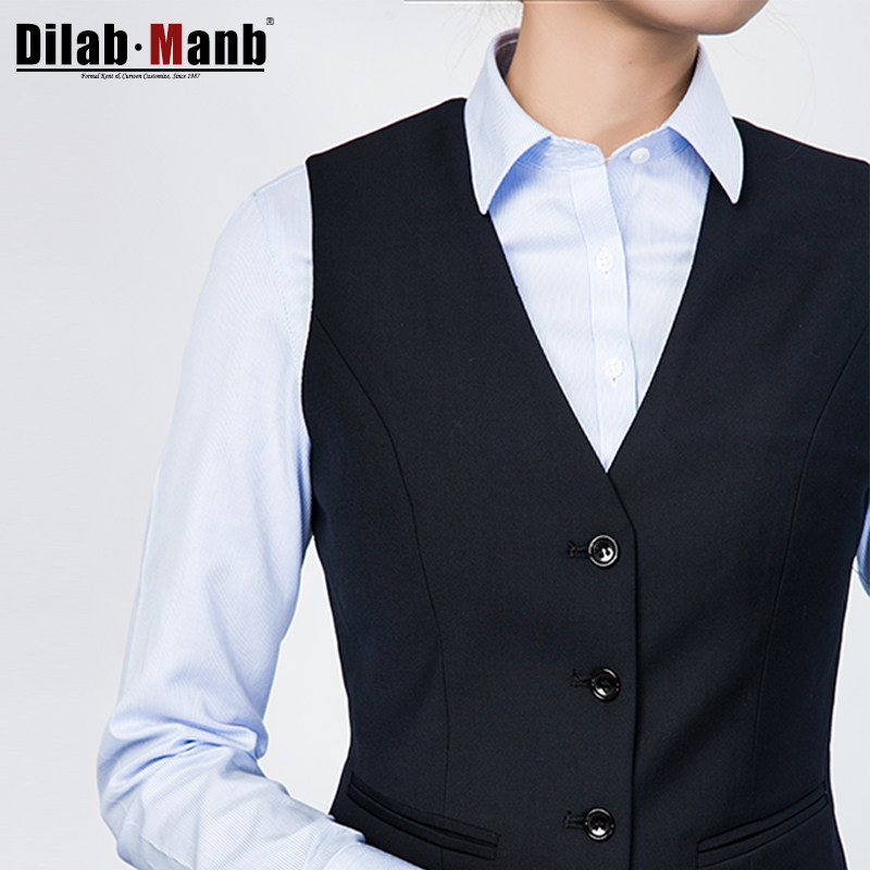 淘宝帝拉蒙尼 高端西服正装衬衫,藏青修身风四扣制服马甲女春秋