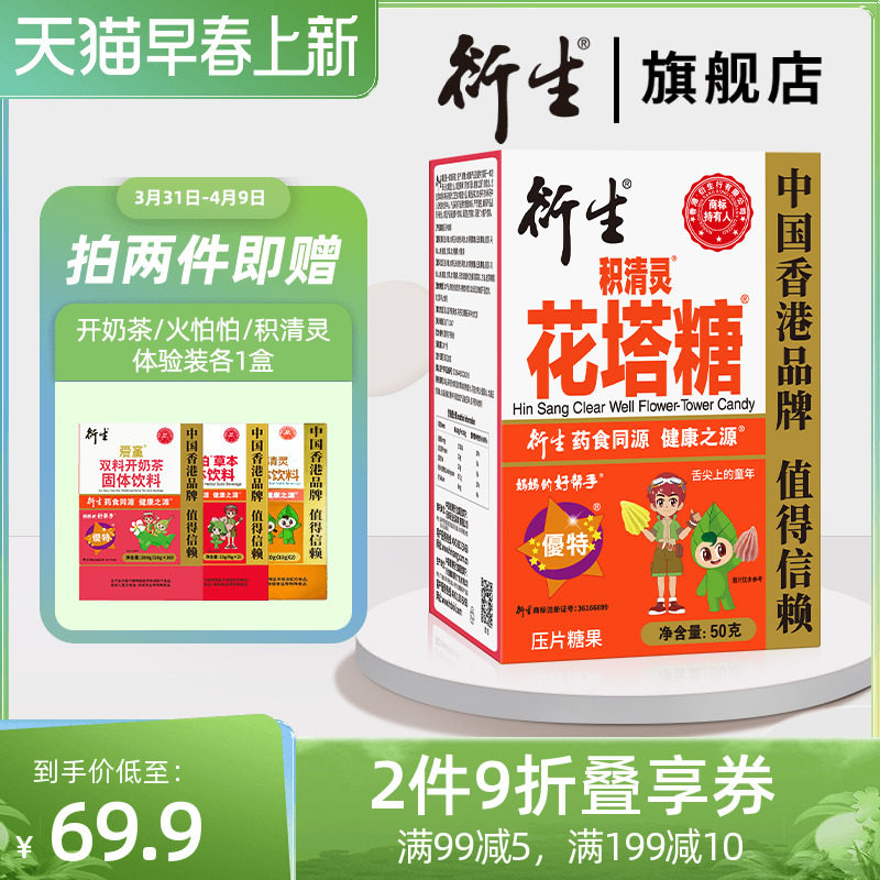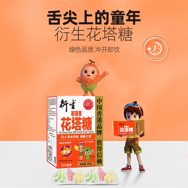 天猫衍生母婴旗舰店,香港衍生积清灵花塔糖甘草橘皮乌梅,药食同源健康之源 儿时花塔糖的味道