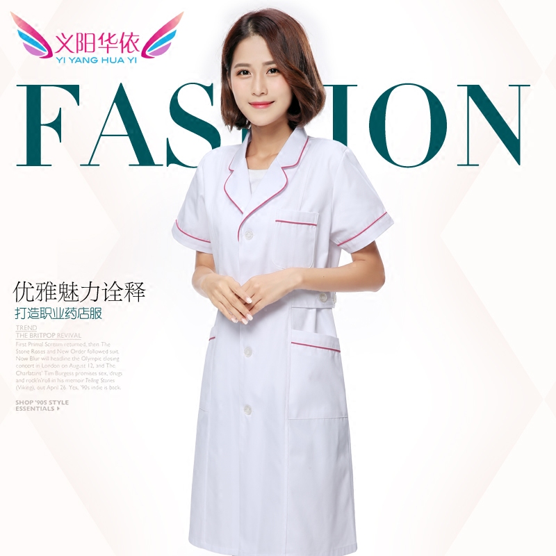 天猫义阳华依旗舰店,药店服医师湖蓝收腰修身白大褂