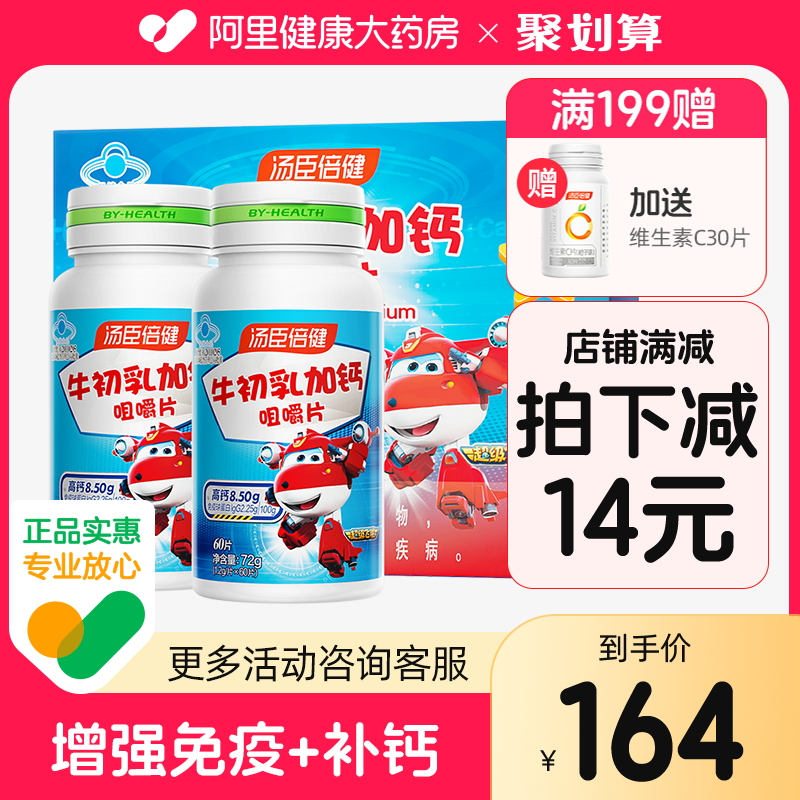 天猫阿里健康大药房,汤臣倍健儿童钙片牛初乳补钙咀嚼片