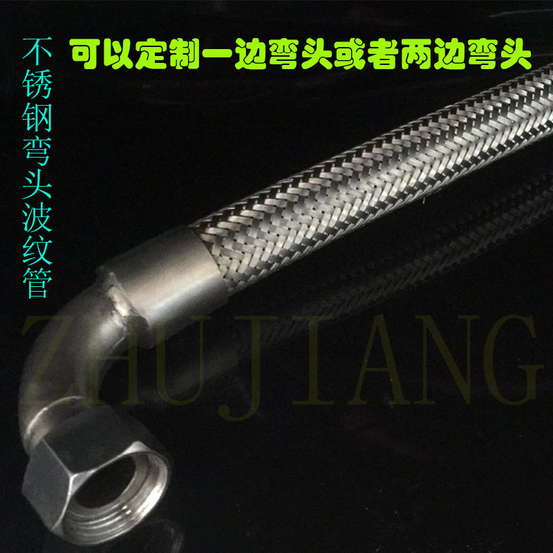 天猫铸江家居专营店,不锈钢弯头金属波纹管工业编制网管,默认一边弯头一边直 接口平口 粗牙螺纹