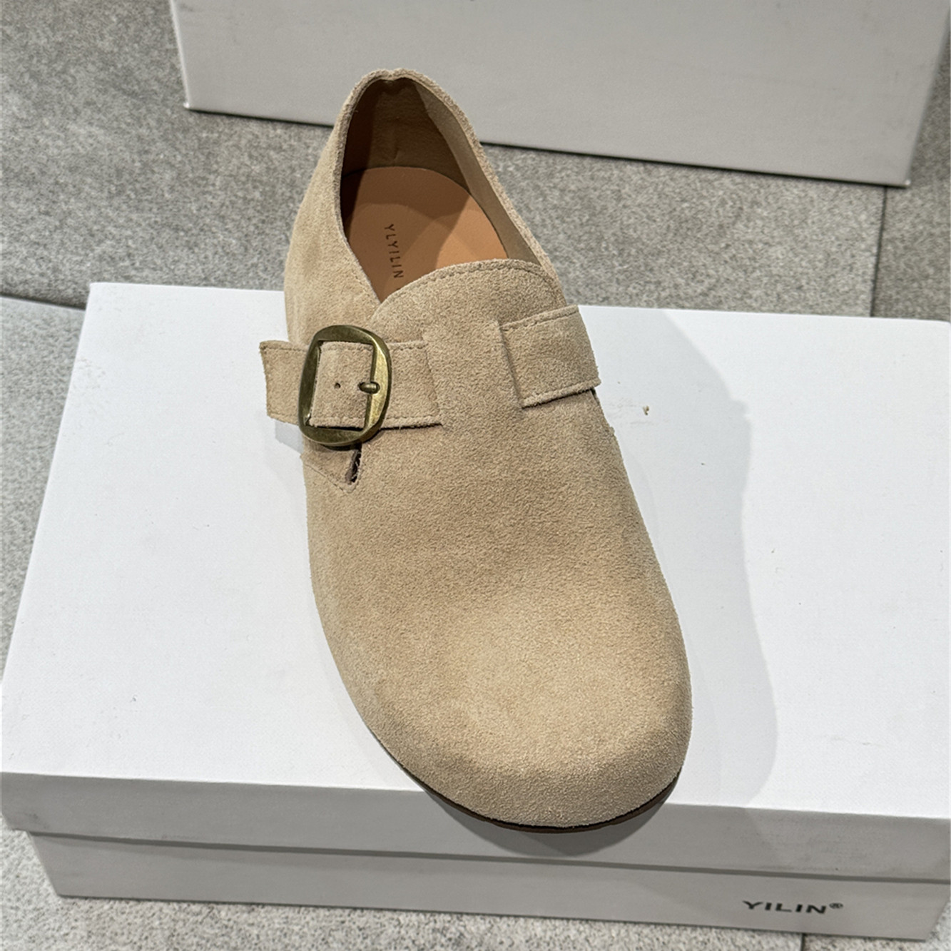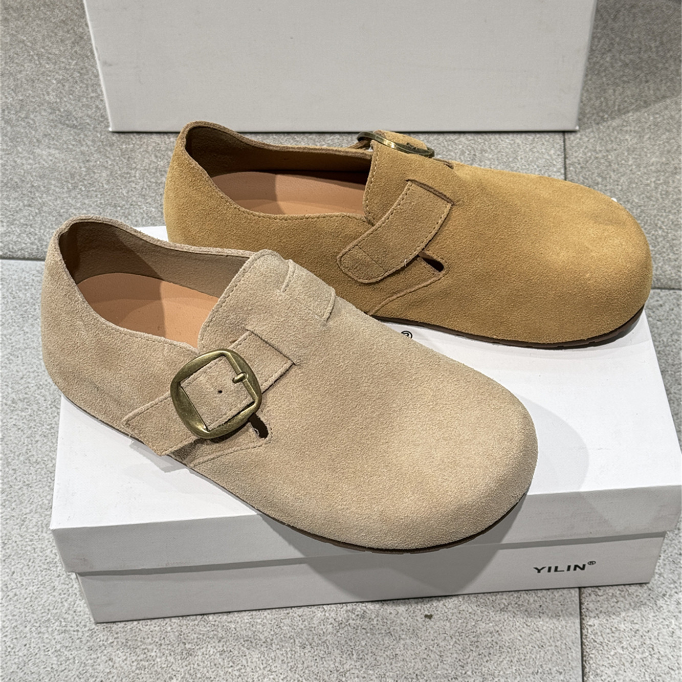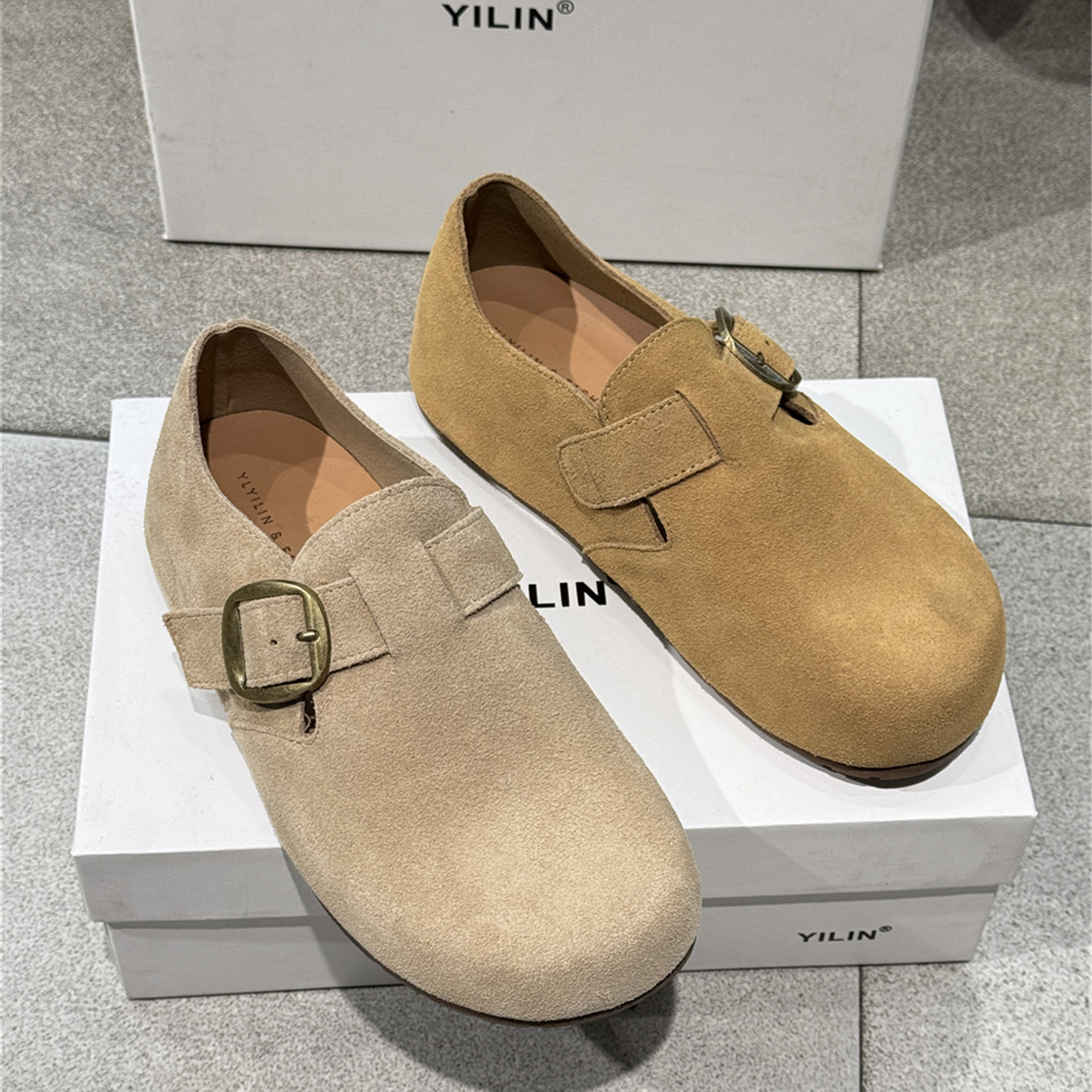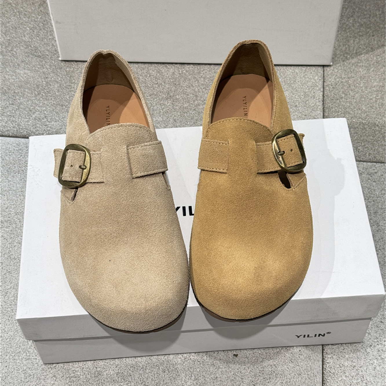 淘宝阿媛鞋柜,以琳~春款2025新真皮皮带扣勃肯鞋圆头豆豆鞋休闲平底单鞋35-082