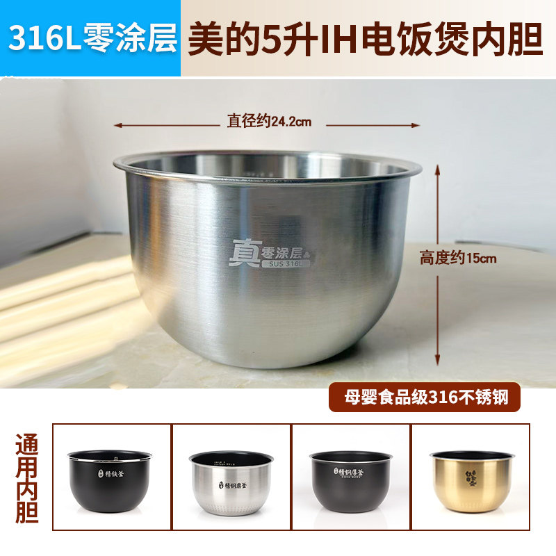 适用美的电饭煲内胆1.6升2升3升4升5升 0涂层316不锈钢电饭锅配件券后价¥74家电电子配件 32 分前