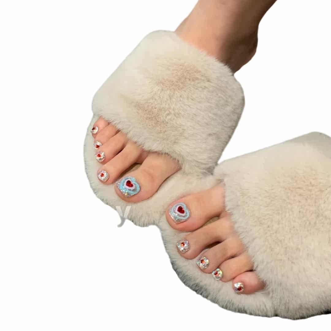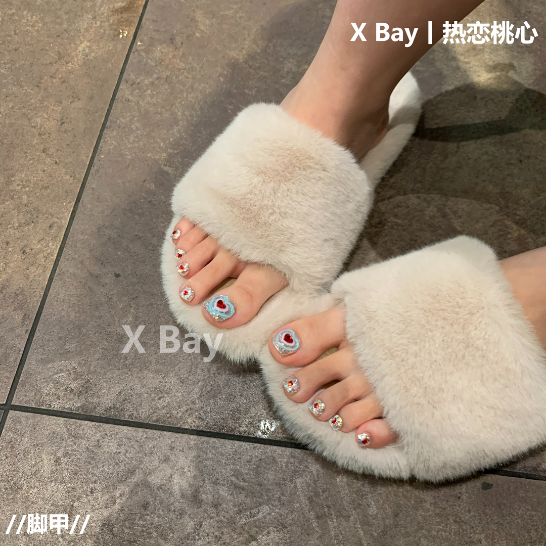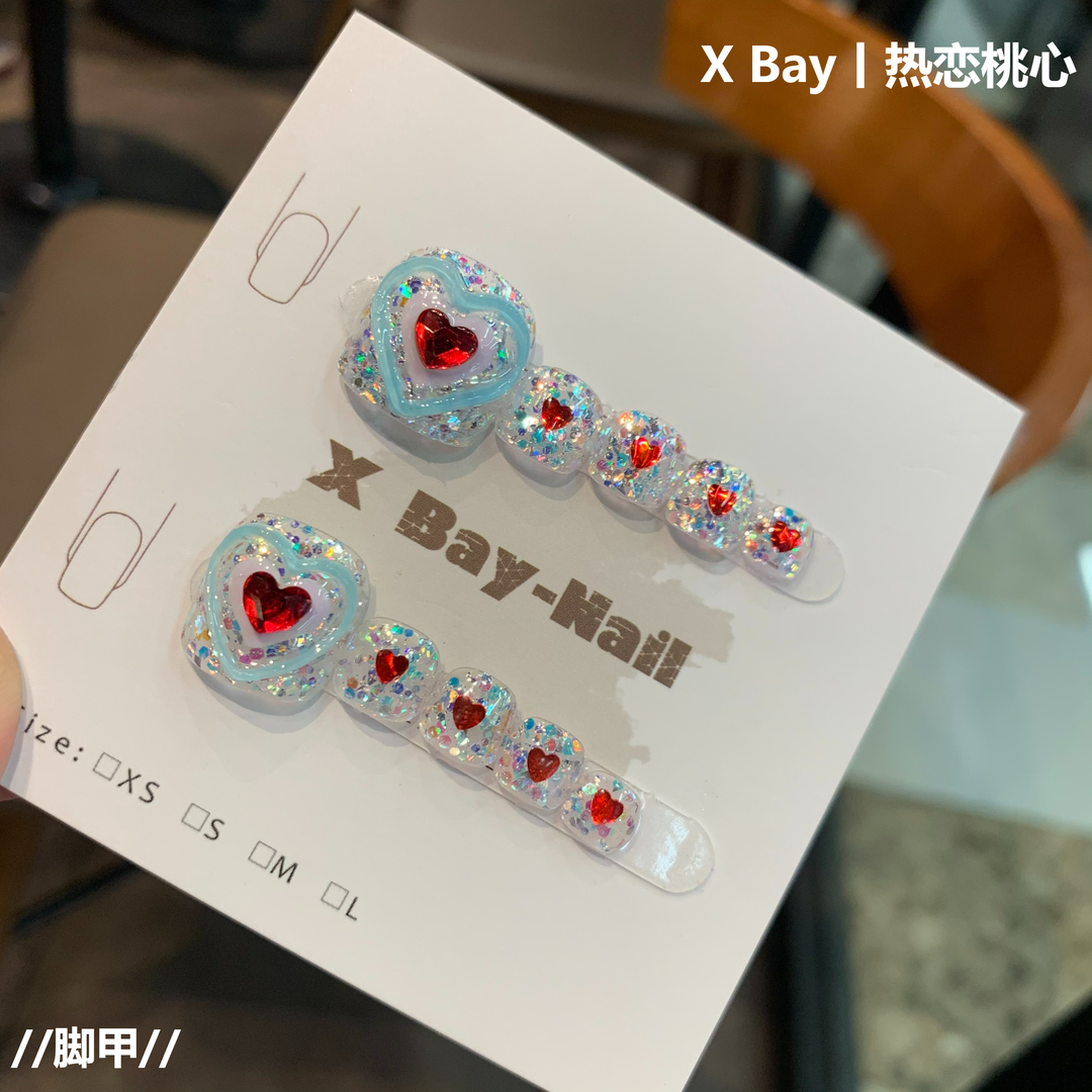 淘宝FAIRY美甲穿搭,热恋桃心Xbay系列|脚部穿戴甲贴片纯手工定制爆闪满钻夏季新款