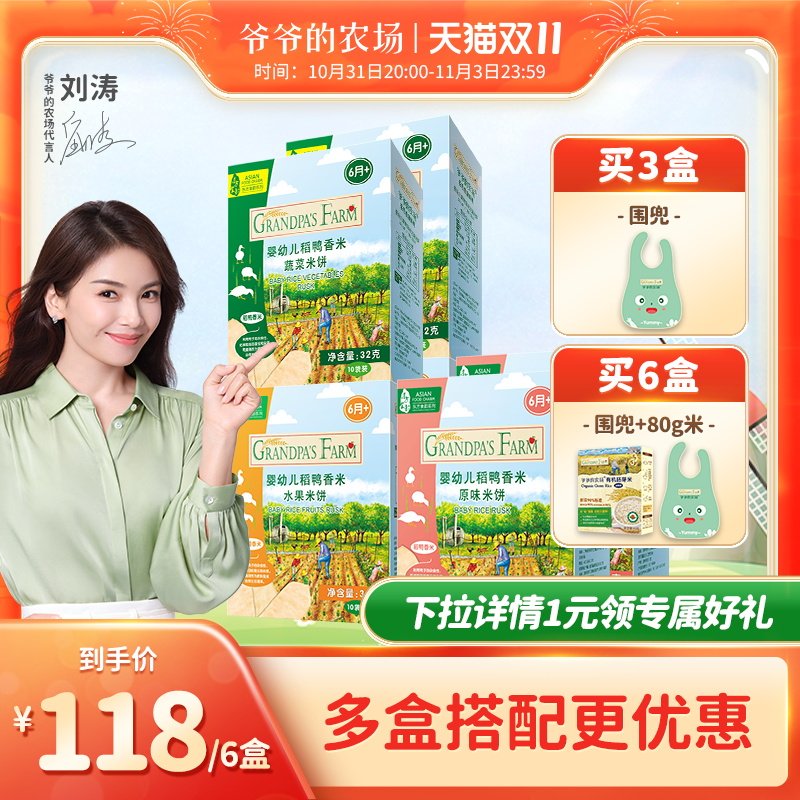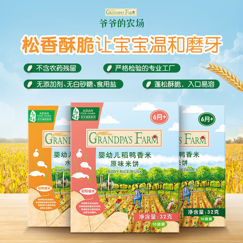 天猫爷爷的农场官方旗舰店,爷爷的农场磨牙棒婴幼儿3盒米饼,稻鸭香米磨牙米饼,不含农残留,营养更健康