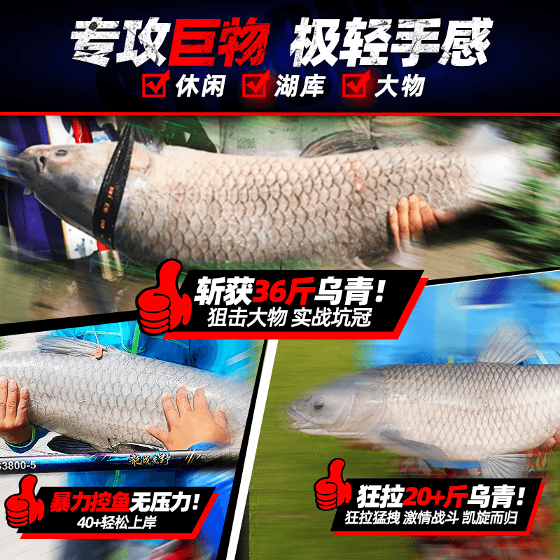 天猫猛将旗舰店,猛将豪气冲天轻量鲢鳙杆鱼杆,轻量鲢鳙杆 18公斤强大钓重 激战百斤巨物!