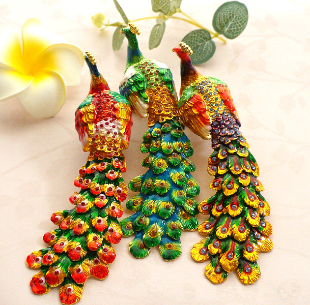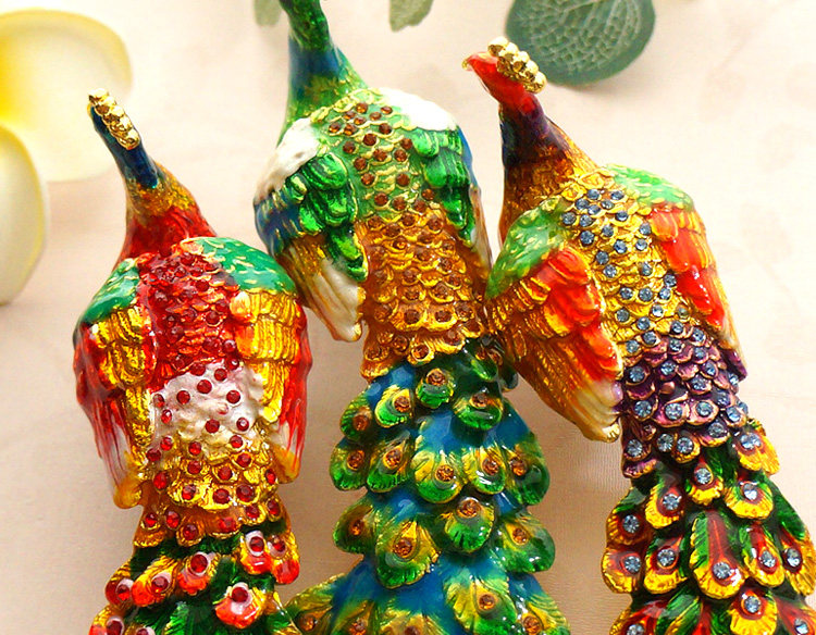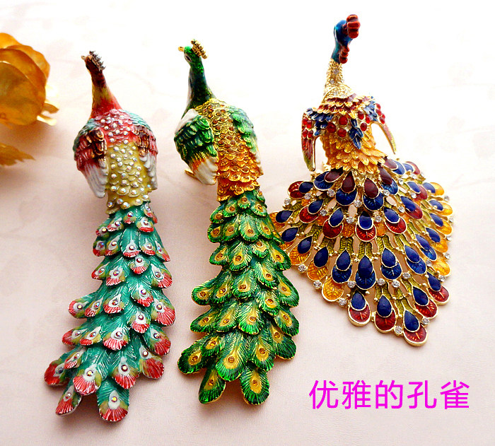 淘宝中国风手工艺品,包邮新式景泰蓝孔雀摆件办公桌合金