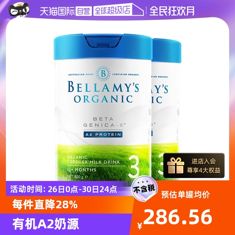 天猫国际自营进口超市,【自营】澳洲贝拉米白金3段1-3岁800g*2罐宝宝白金有机澳大利亚,有机A2高能配方 助力宝宝抵御力