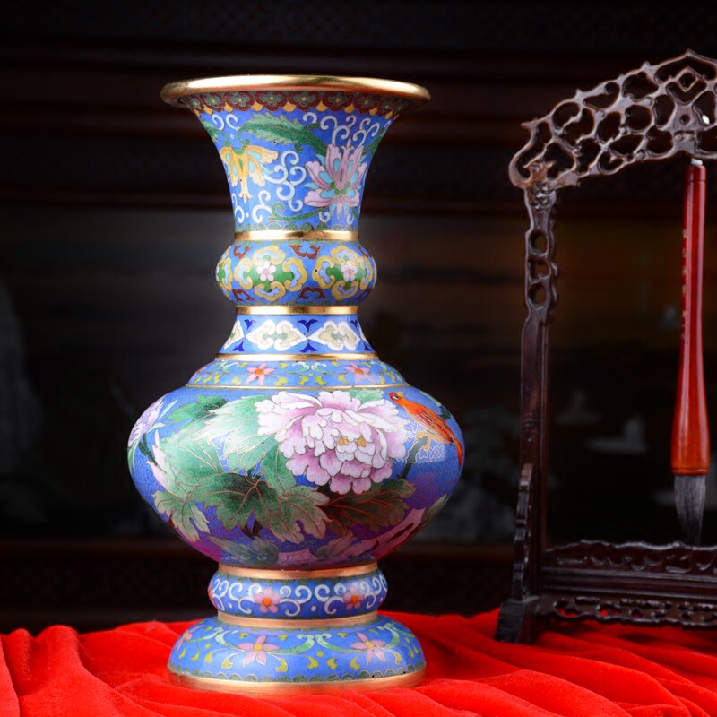 天猫财福缘家居旗舰店,景泰蓝摆件牡丹花北京传统老外花瓶,新品上市 皇家艺术 实体经营
