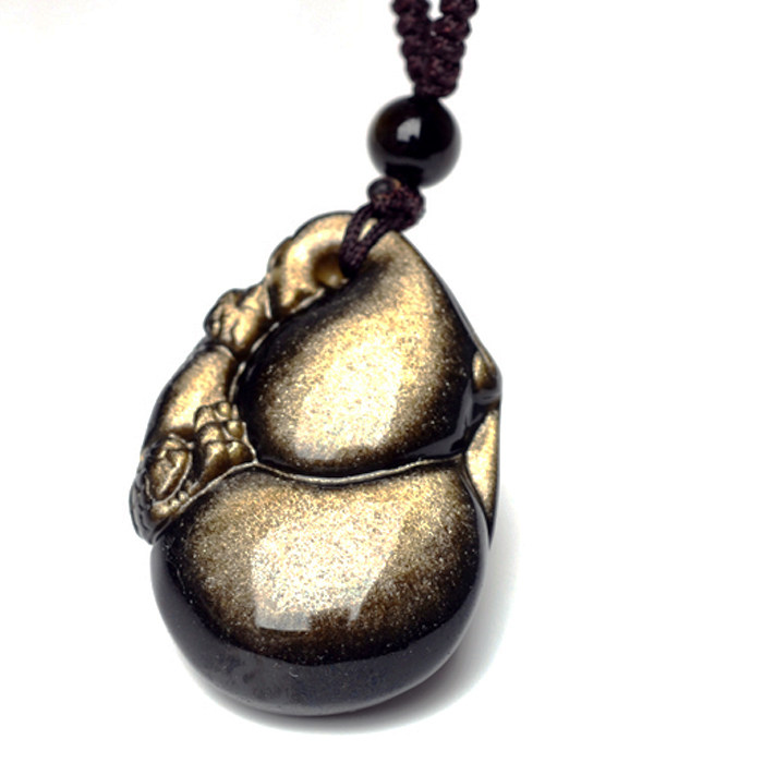 天然金曜石貔貅吊坠 金曜石葫芦项坠 一世无忧金曜石葫芦貔貅