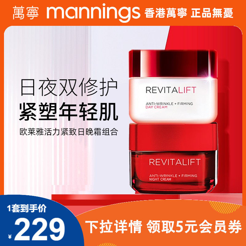 天猫万宁官方海外旗舰店,欧莱雅复颜抗皱面霜日霜晚霜套装,日夜双修护 紧塑年轻肌