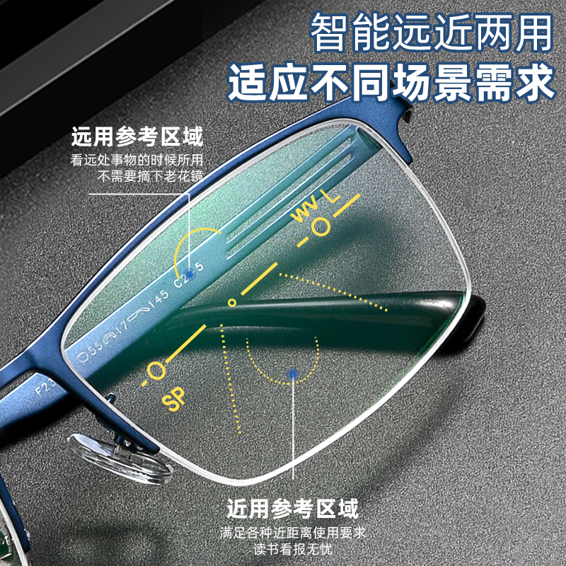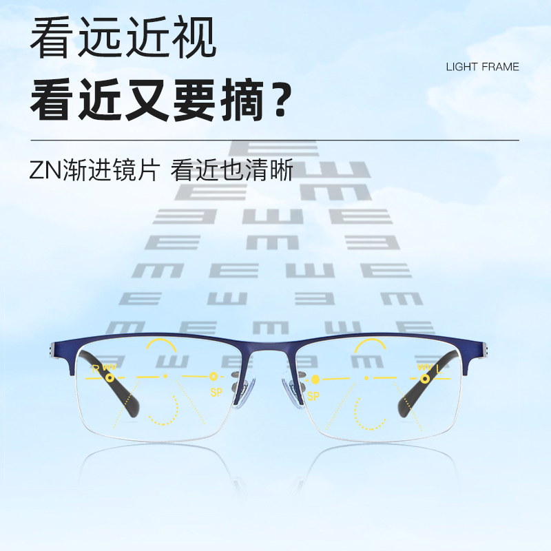 天猫zn眼镜旗舰店,近视老花一体渐进多焦点老花镜,看远看近一副搞定 渐进多焦点镜片