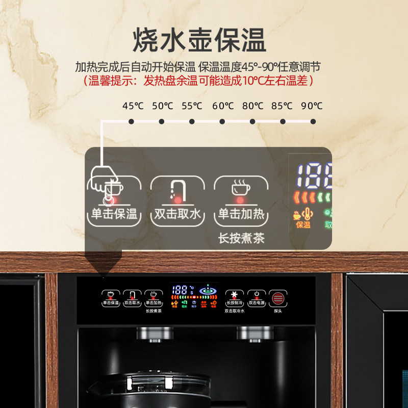 天猫好茶坊旗舰店,实木多功能冰吧消毒家用冷热冷藏柜,3-20℃冷藏柜+消毒+烘干+加热+保温+水制冷