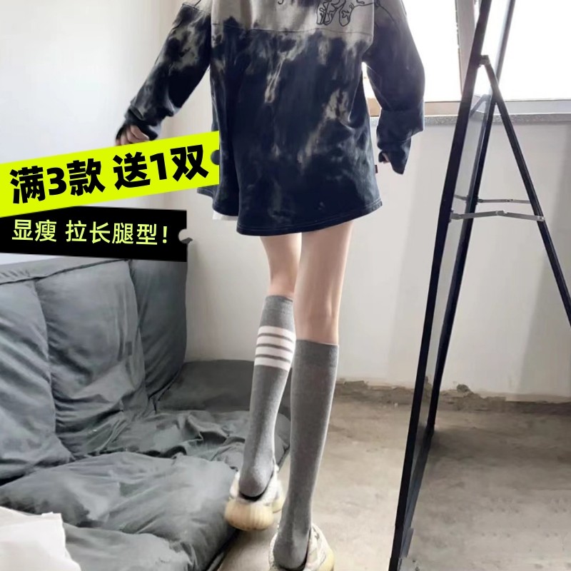 淘宝Hi Socks潮袜,小腿袜子女春夏棉学生jk带杠及膝袜