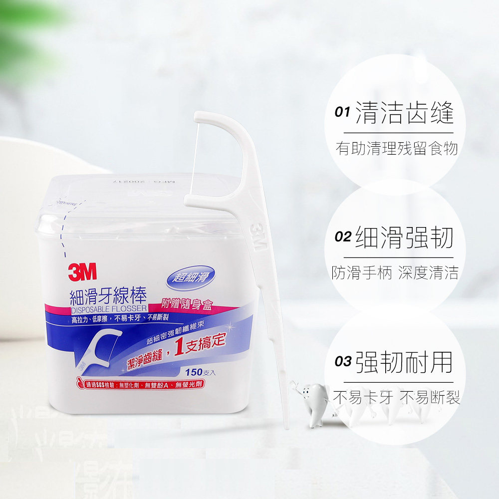 天猫国际自营进口超市,自营细滑牙线棒150支3M清洁,超细滑牙线棒 深入清洁齿缝