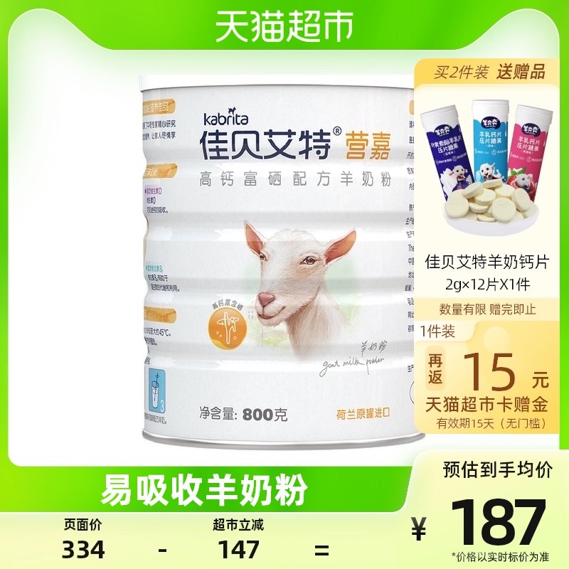 天猫超市,佳贝艾特营嘉高钙儿童羊奶粉800g,增硒健康 提升自护力