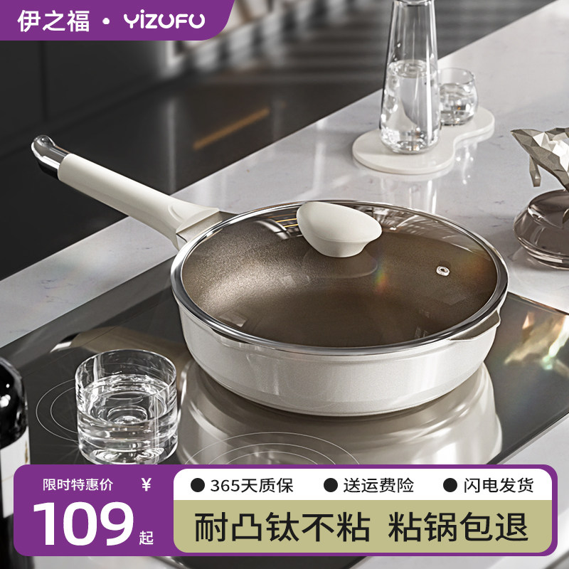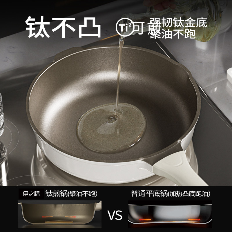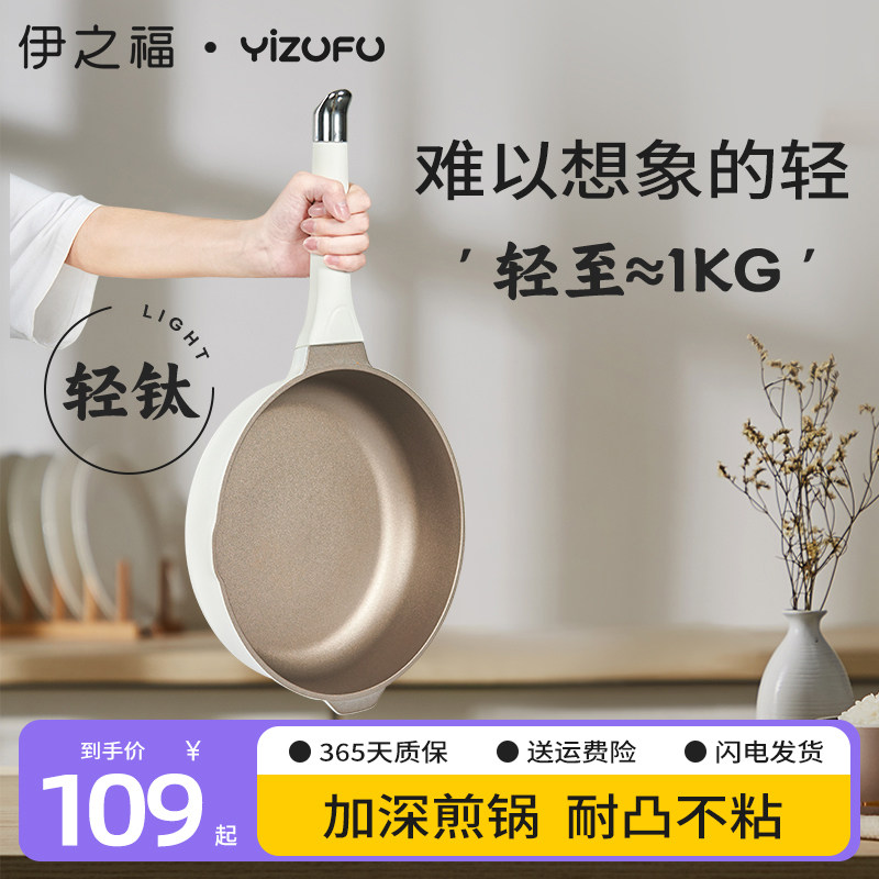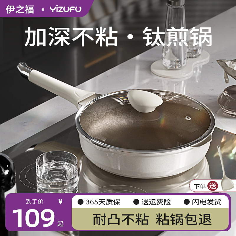 天猫伊之福旗舰店,无涂层加深钛煎锅平底锅,加高多用 不凸不粘 0涂层钛健康