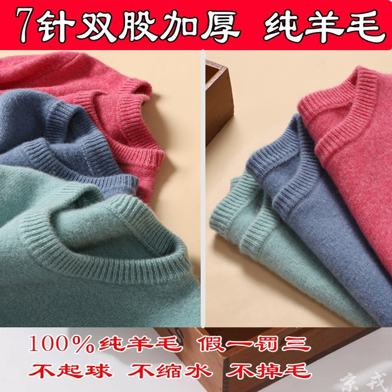 淘宝鄂尔多斯市伊旗羊绒馆,双股加厚套头毛衣100%纯羊毛衫冬