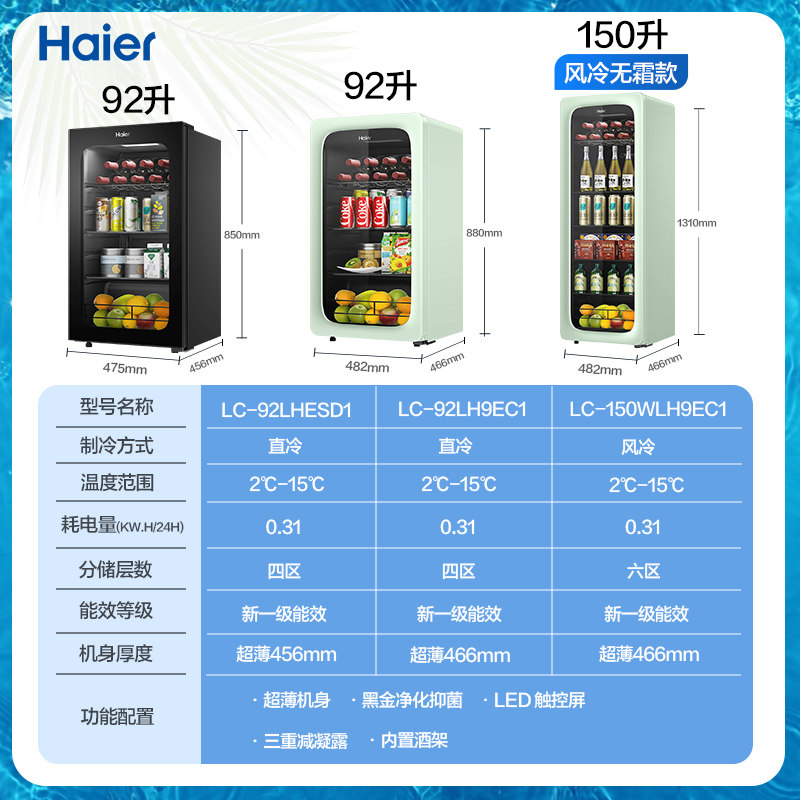 淘宝Haier海尔听竹企业店,海尔冰吧家用小型超薄92/150L办公室冰吧茶叶保鲜客厅冷藏饮料柜