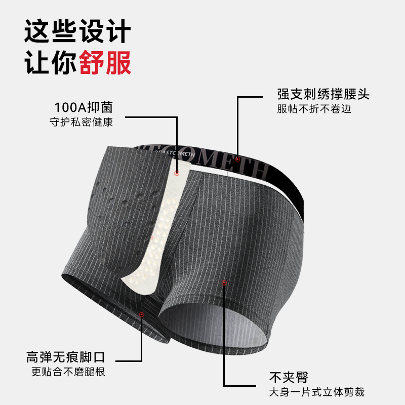 天猫野兽来了旗舰店,野兽来了男士内裤纯棉条纹抗菌,纯棉条纹抗菌新款透气100A抗菌四角潮流男款