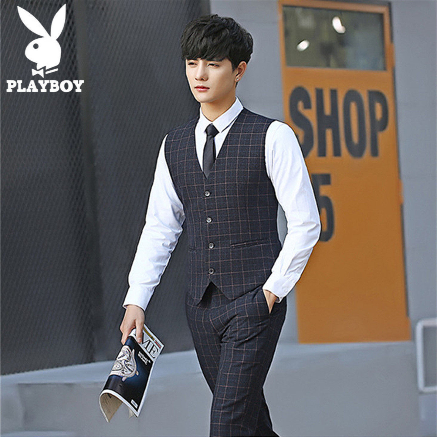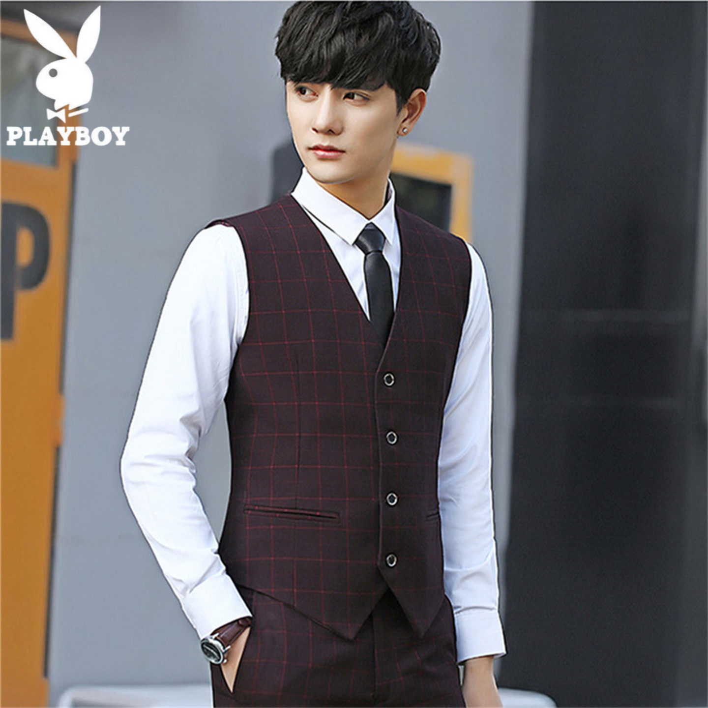 淘宝花 花 公 子 一 品 男 装,花花公子格子西装马甲修身背心男