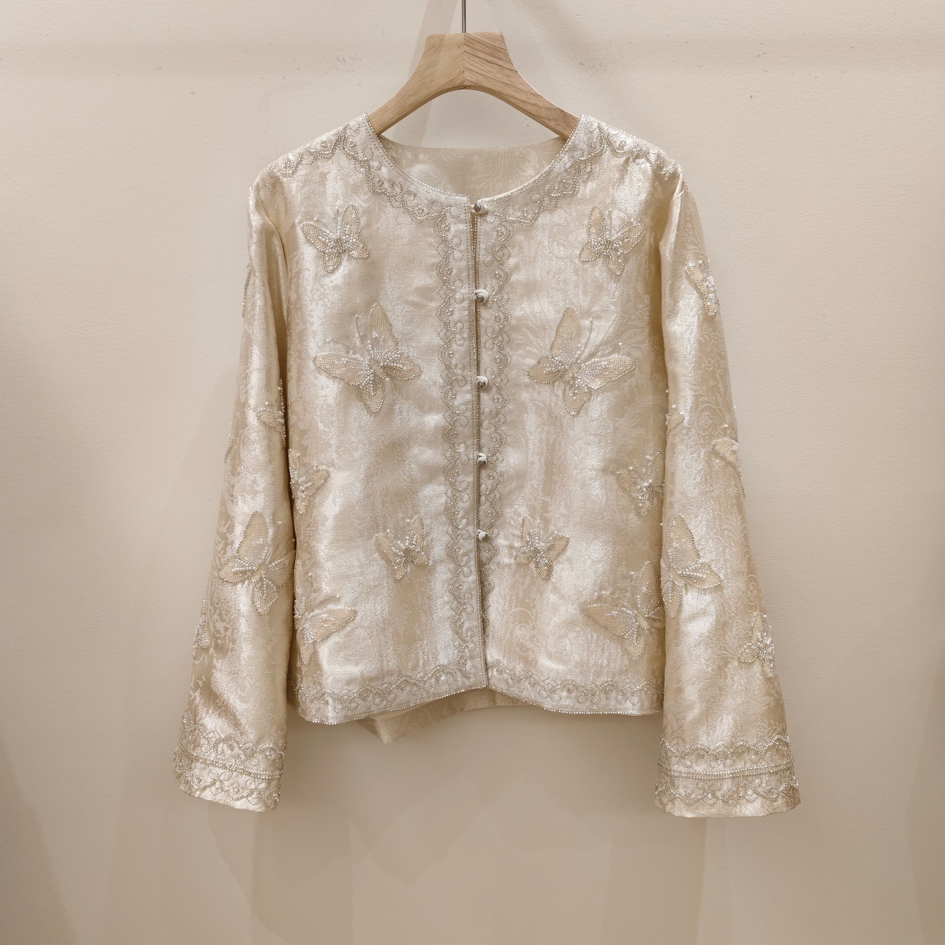 淘宝小陈女装服饰店,新中式钉珠蝴蝶宽松圆领外套女