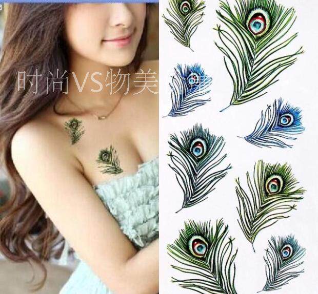 淘宝时尚vs物美价廉,十张包邮防水羽毛可爱小清新纹身贴