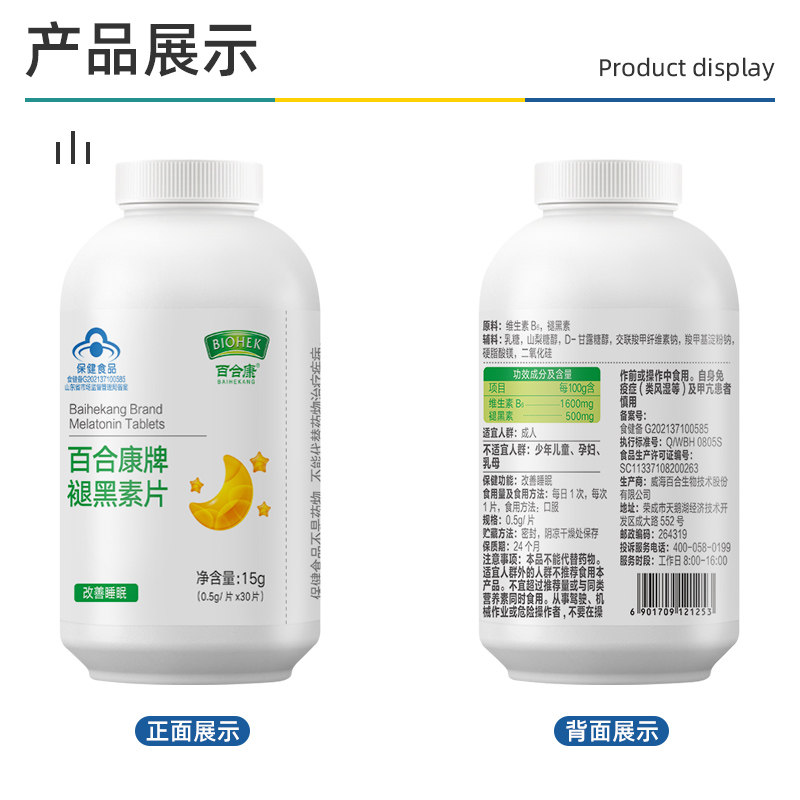 天猫金周保健品专营店,4瓶改善睡眠百合康牌褪黑素胶囊,拍1发4瓶 拍2发9瓶 睡前吃一粒 安睡一整晚