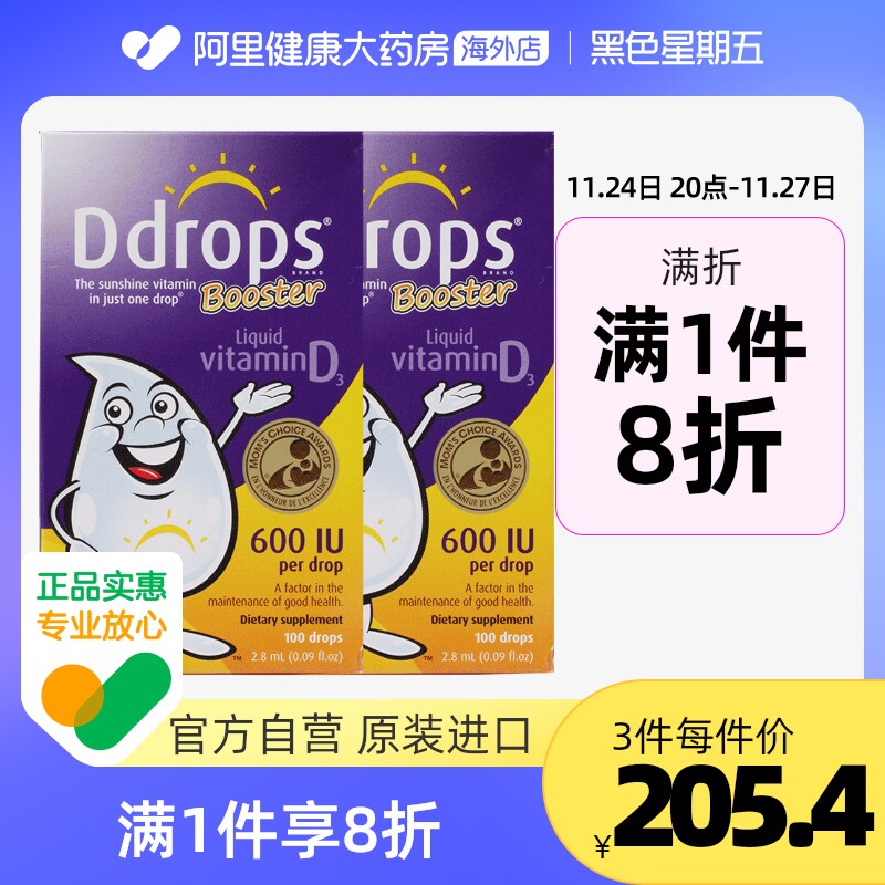 天猫阿里健康大药房海外店,Baby Ddrops 滴卓思婴幼儿童维生素D3 宝宝补钙滴剂600IU 2.8ml*2,Ddrops维生素D3 0明胶 0防腐 敏宝安心