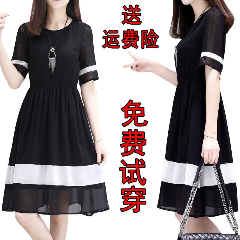 淘宝季季8原创精品女装,雪纺2023夏新款修身显瘦大码a字裙