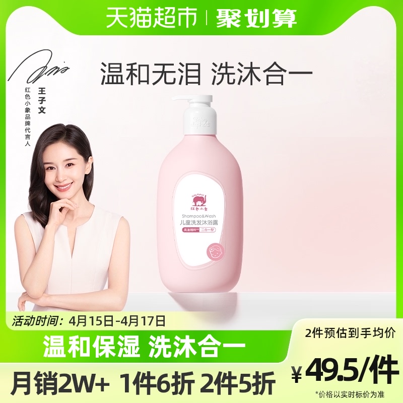 天猫超市,红色小象儿童沐浴露洗发水二合一786ml×1瓶婴儿沐浴宝宝洗护专用,温和无泪洗护