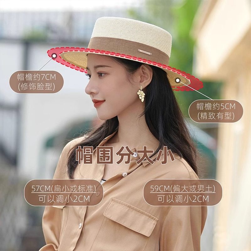 淘宝焦尚服饰配件,平顶草帽女平檐手编法式小礼帽遮阳帽英伦风海边沙滩防晒帽太阳帽