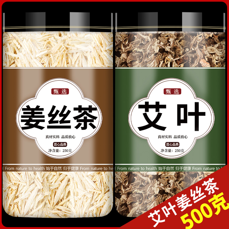 艾叶生姜茶中药材正品艾草老干生姜片月子里泡茶泡水喝10g3克5g加