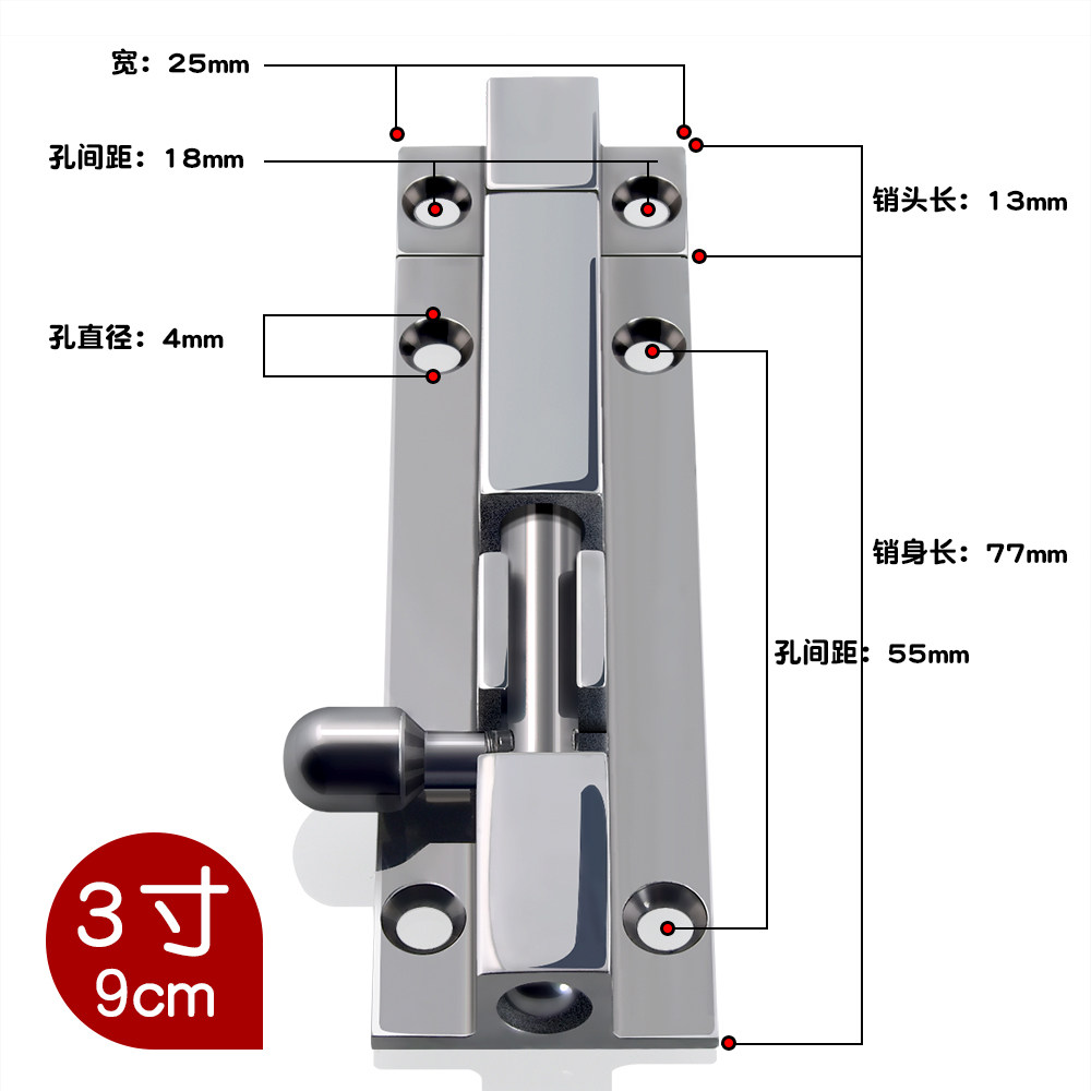 淘宝d[s520804868],316不锈钢插销3寸木门栓防盗门明装插销卫生间插销锁门扣门锁扣