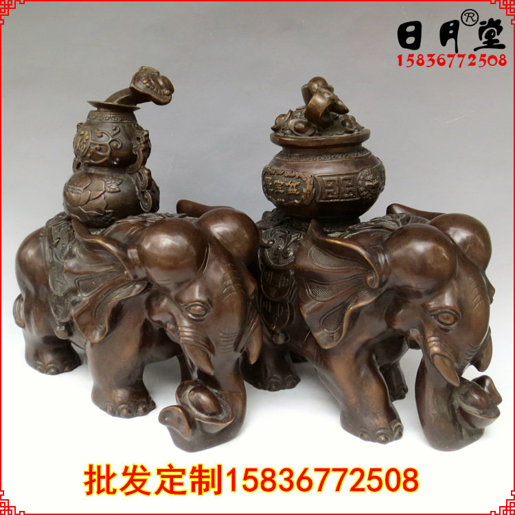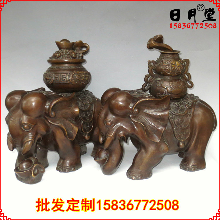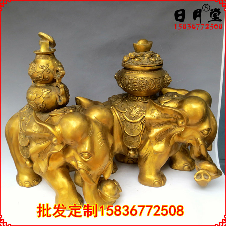 淘宝一帆风顺吧,黄铜纯铜大象一对铜象 大号铜大象 盆象 葫芦象 摆件招财