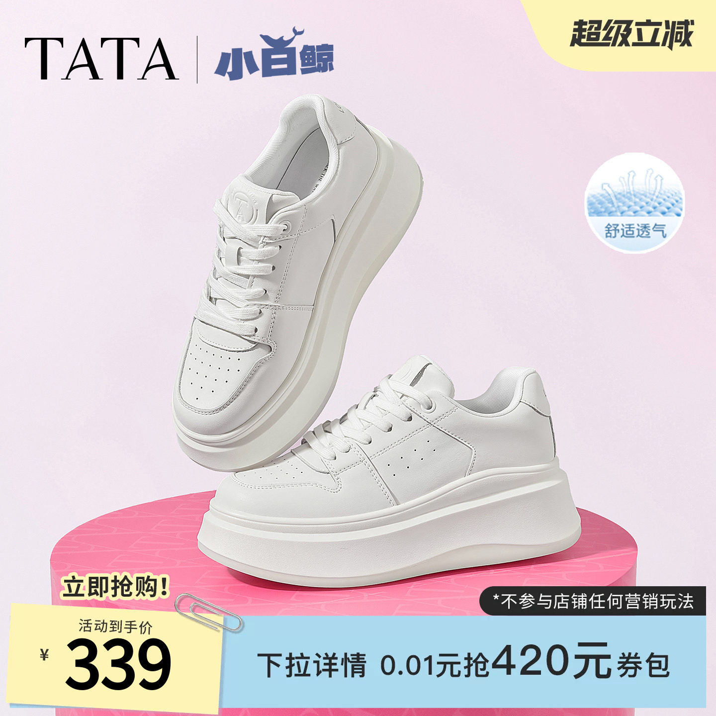 天猫他她Tata官方旗舰店,TATA/他她休闲厚底时尚小白鞋,时尚休闲板鞋