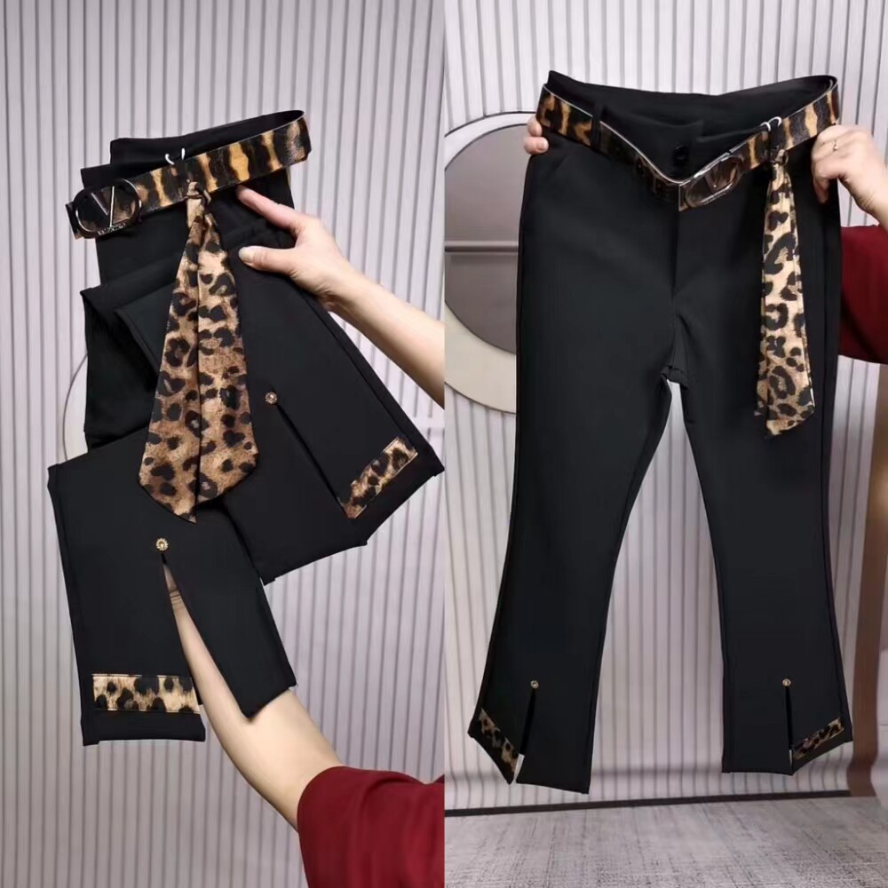 淘宝518大码女装,高腰弹力微喇裤女显瘦