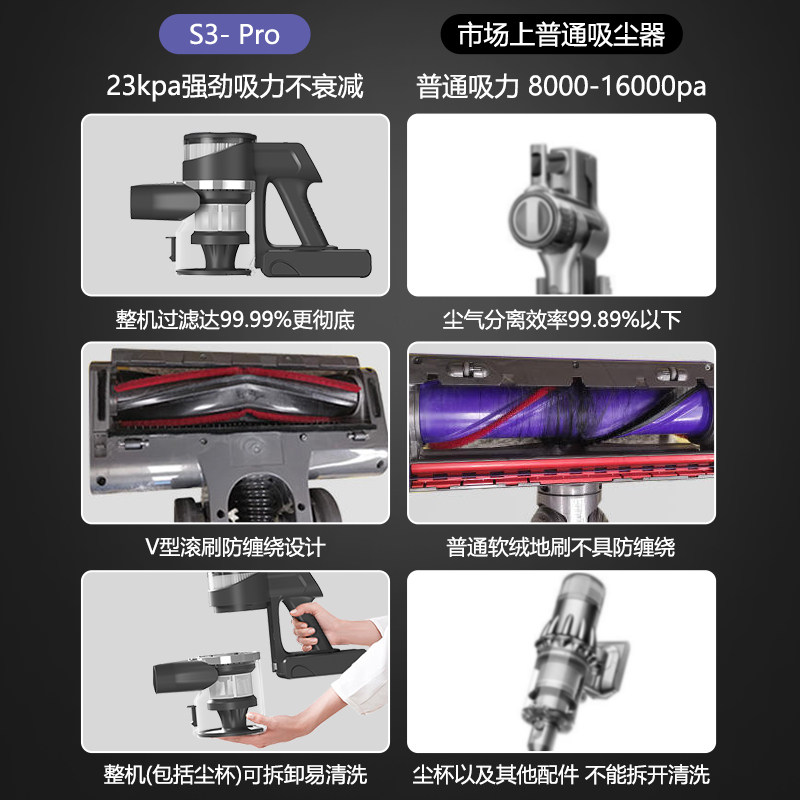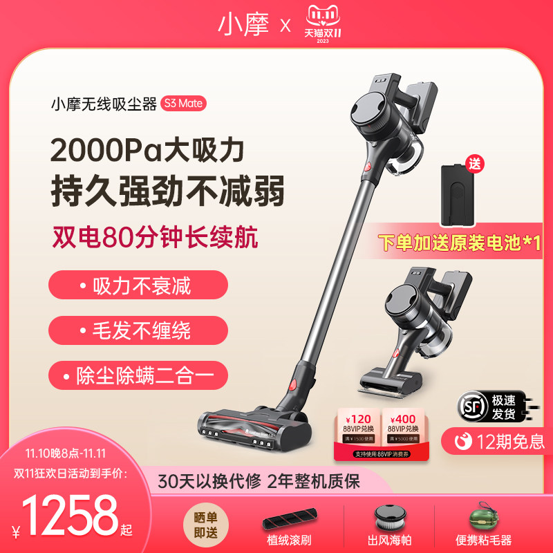 小摩S3 Mate大吸力吸尘器家用无线手持吸头发猫毛宠物毛地毯除螨