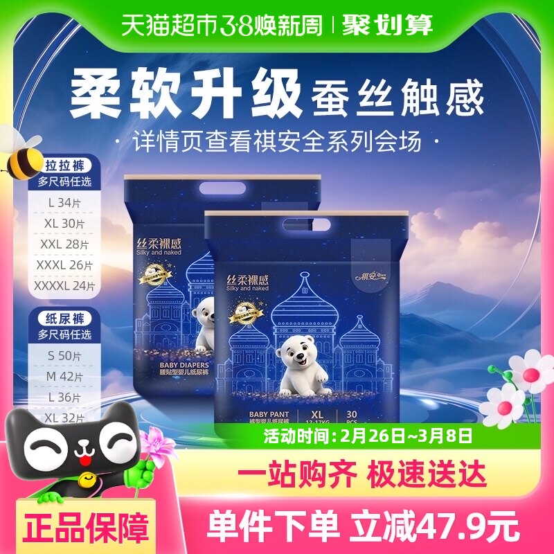 天猫超市,祺安祺安裸感纸尿裤拉拉裤多尺码,官方自营 品质保证