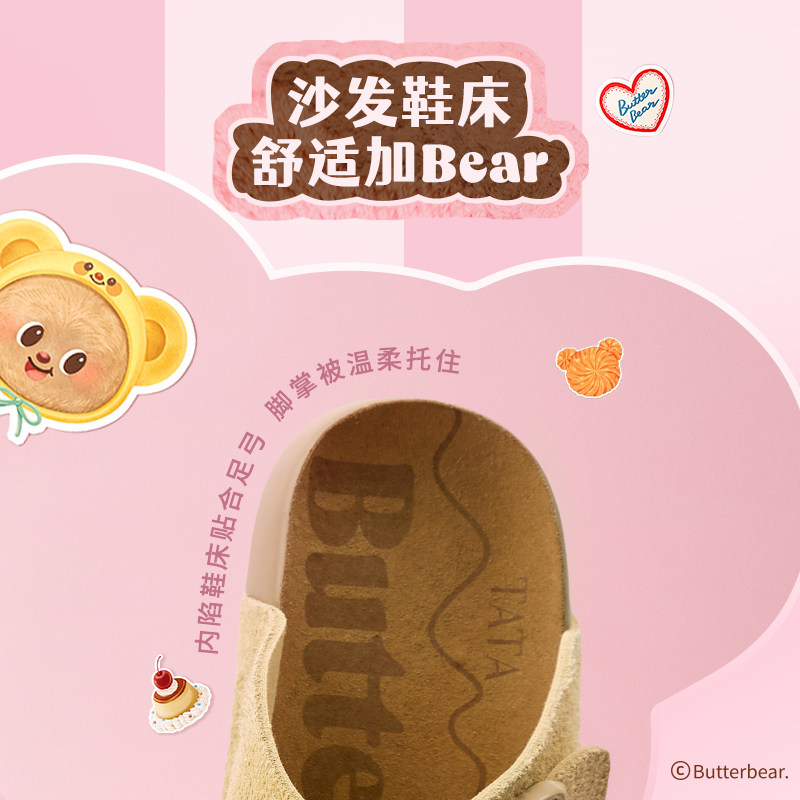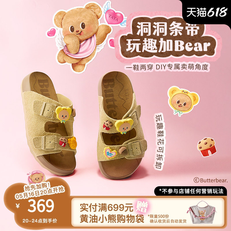 天猫他她Tata官方旗舰店,TATA他她黄油小熊联名勃肯鞋凉拖鞋女2025夏季休闲鞋外穿4TF01BT5,勃肯鞋女外穿时尚拖鞋